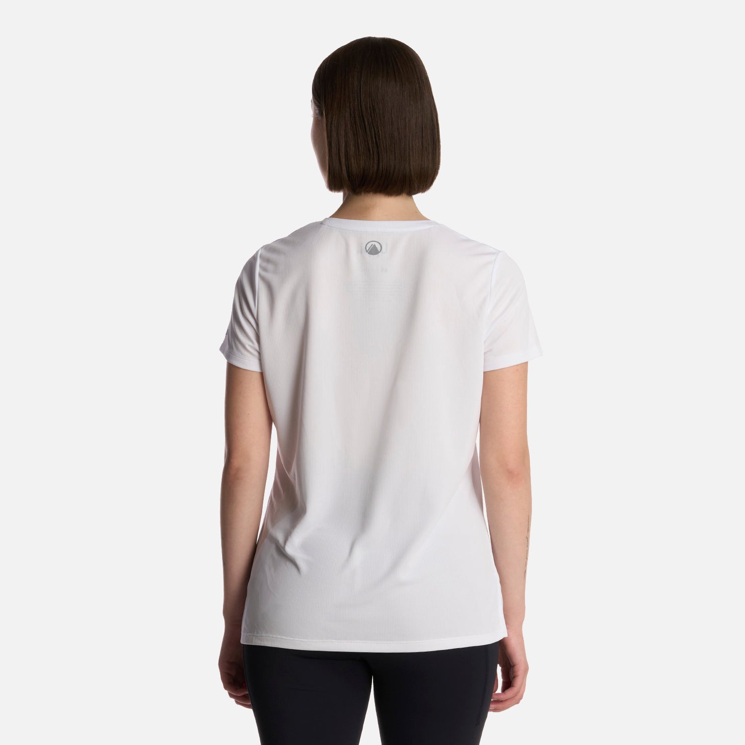 Polera deportiva de secado rápido, con cuello en V y mangas rectas. Incluye logos reflectivos para visibilidad adicional. Perfecta para mantener la frescura y el estilo durante tus sesiones de entrenamiento.