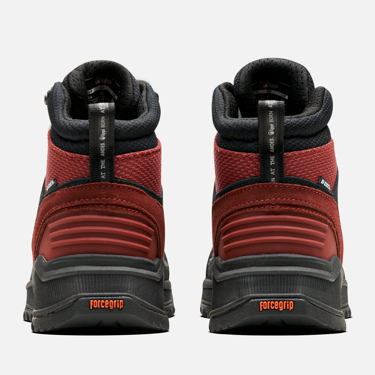 Suela Forcegrip con alto agarre diseñada para la agreste cordillera. Cuenta con protecciones de goma en el talón y en la puntera, también tiene refuerzos de cuero y tela resistente a la abrasión, además de su membrana impermeable B-Dry que lo transforman en un botín muy útil para cualquier aventura en Los Andes.