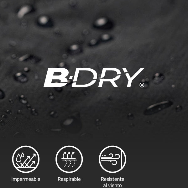 Tecnología de impermeabilidad libre de PFC. Todas nuestras prendas impermeables pasan por una serie de pruebas: simulación de lluvia suave, prolongada, forzamiento de agua hacía el interior, exposición a fuertes vientos. Solo así, nuestros productos tienen el apellido oficial de B-Dry.