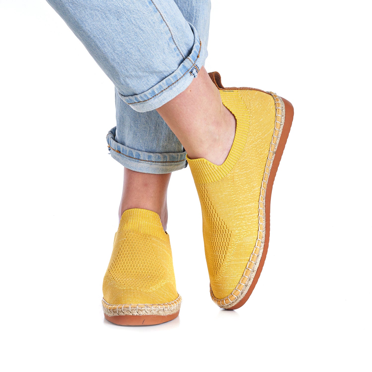 Alpargata tejida en poliéster 100% reciclado capaz de adaptarse al pie.