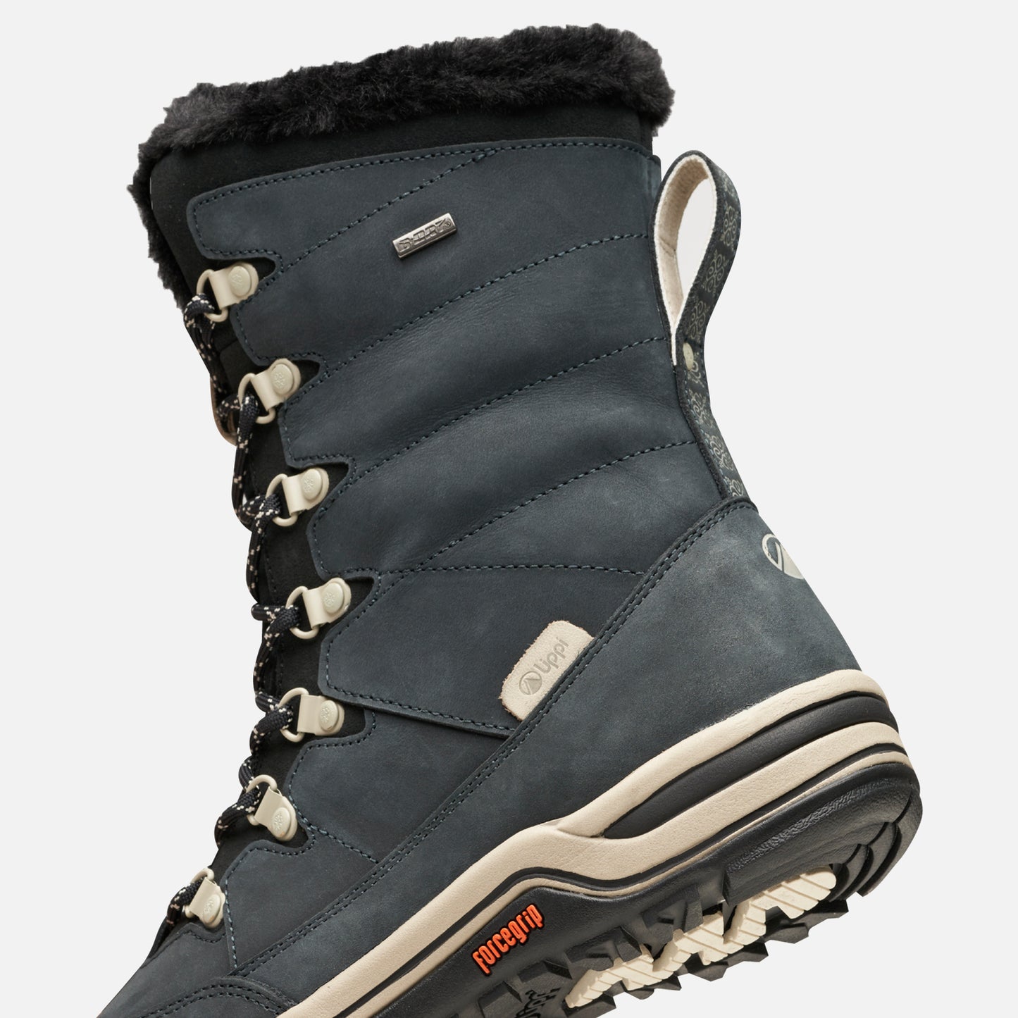 · Bota térmica mujer. · Impermeable, térmica y versátil. · Caña alta; estabilidad y protección en el tobillo. · Capellada de cuero nubuck y cow suede hidrofugado. · Membrana impermeable B-Dry. · Gran aislación, forro de micropolar y peludo en la parte superior. · Suela Forcegrip de goma de gran agarre apta para la nieve. · Entresuela de EVA. · Plantilla de EVA antibacterial. · Pasacordones metálicos y cordones redondos.