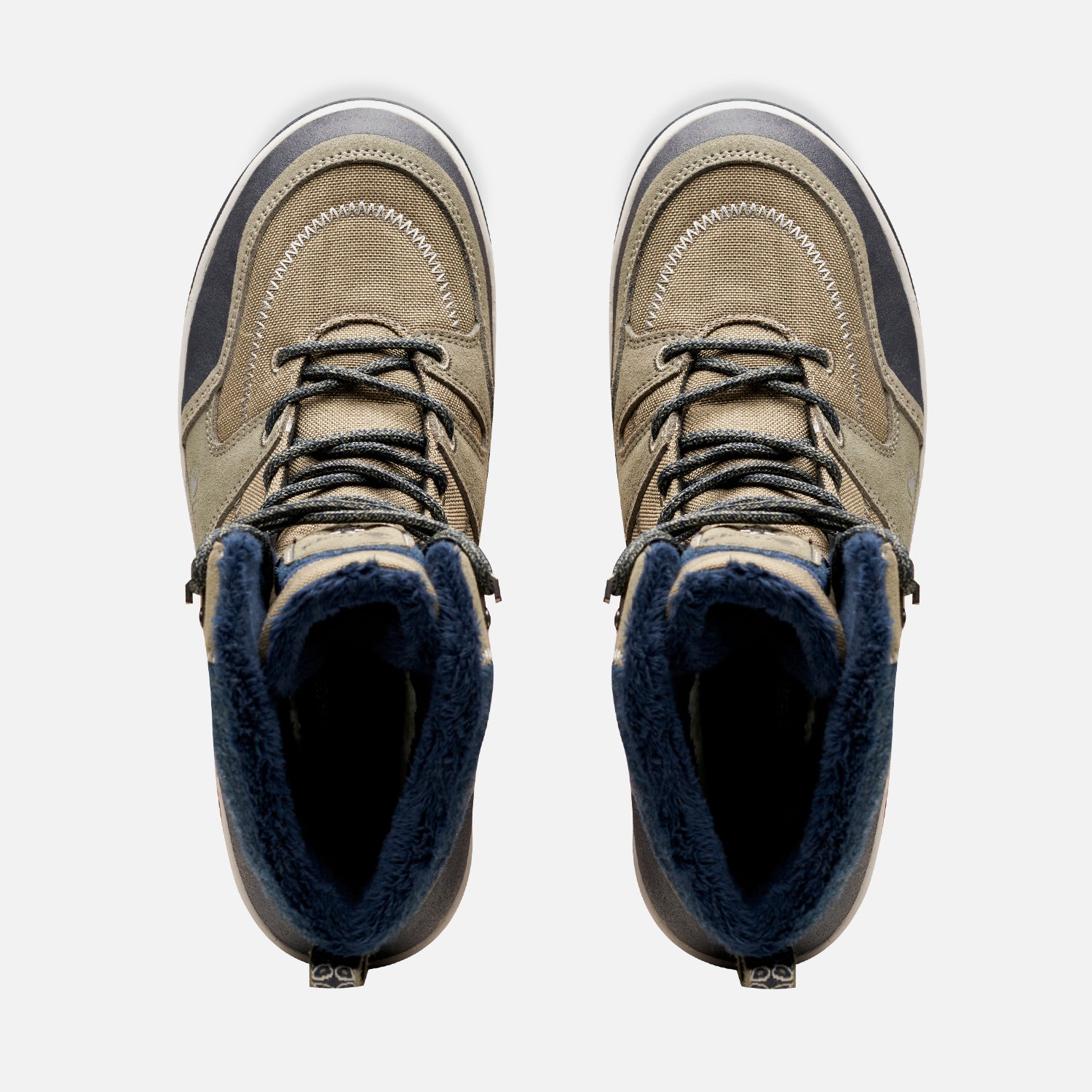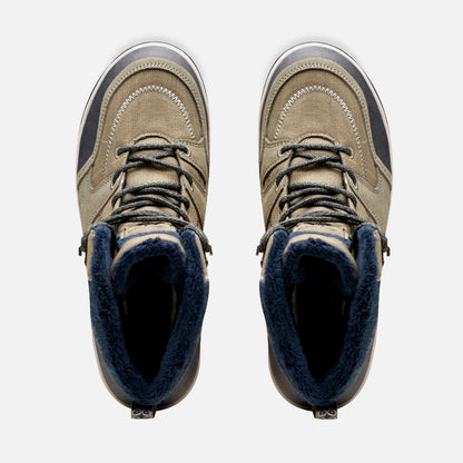 · Capellada: Cuero cow suede, nylon canvas y fieltro hidrofugados. · Forro: Membrana impermeable B-Dry, micropolar Polartec y piel sintética. · Suela: Forcegrip de goma. · Entresuela: EVA. · Plantilla: EVA antibacterial con aislación térmica de aluminio.