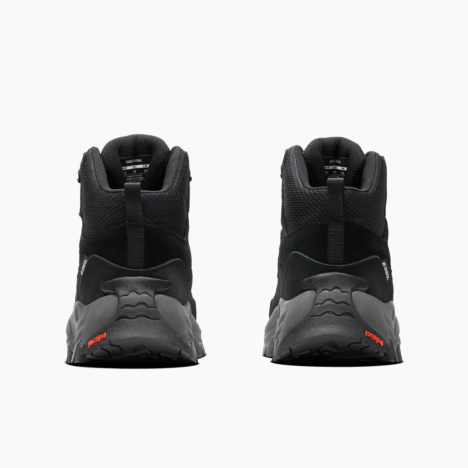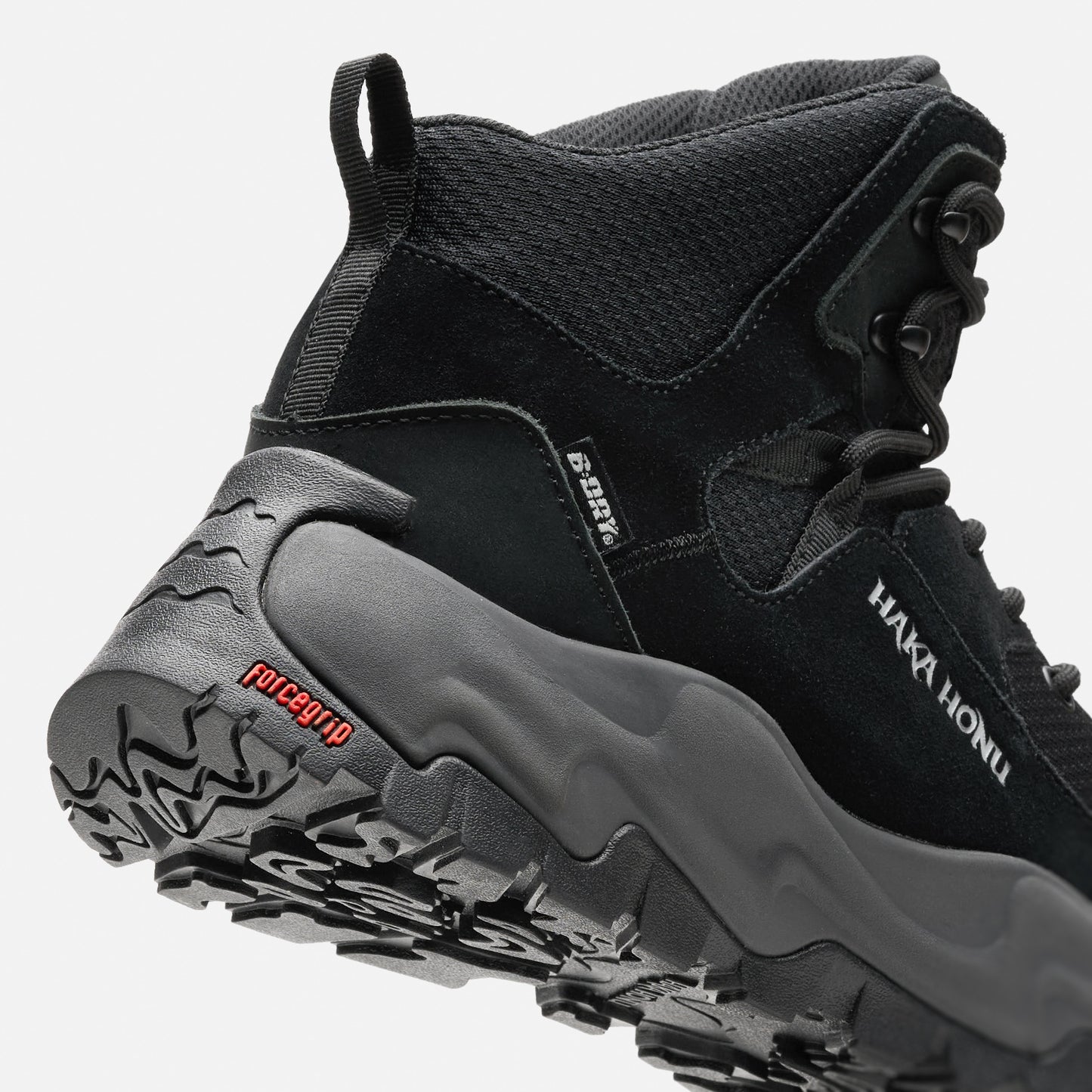 Botín Hiking. Capellada textil, Cuero Cow suede y Nubuck. Forro membrana B-Dry impermeable y poliéster. Suela Forcegrip antideslizante. Entresuela de EVA. Plantilla Ortholite de espuma antibacterial. Peso: 558 gramos