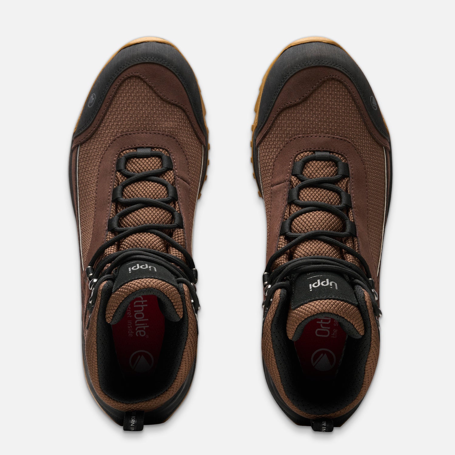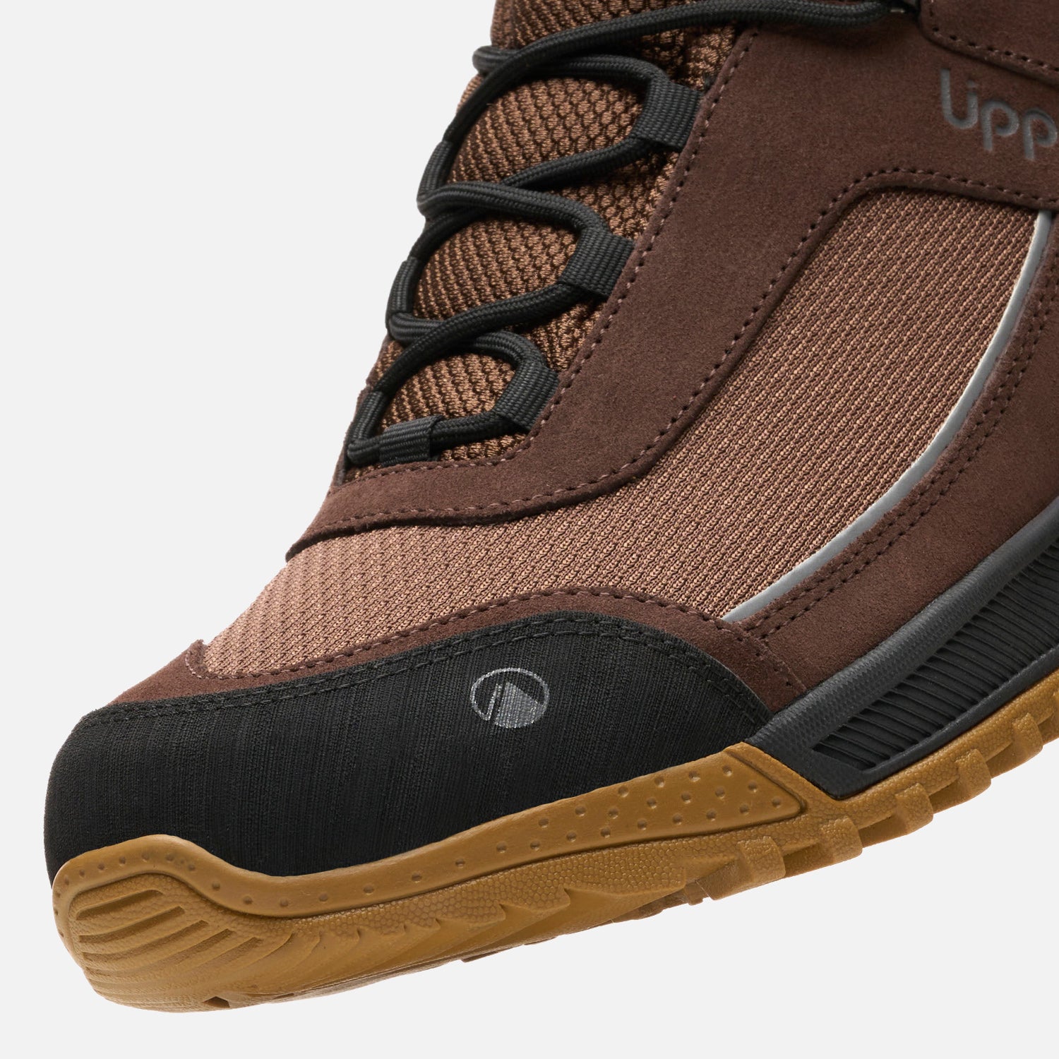 · Botín de hiking. · Capellada de Cow Suede. · Refuerzo de goma en puntera y goma moldeado en talón. · Forro membrana B-Dry impermeable. · Suela Forcegrip. · Entresuela de Phylon. · Plantilla Ortholite de espuma antibacterial. · Detalles reflectantes.