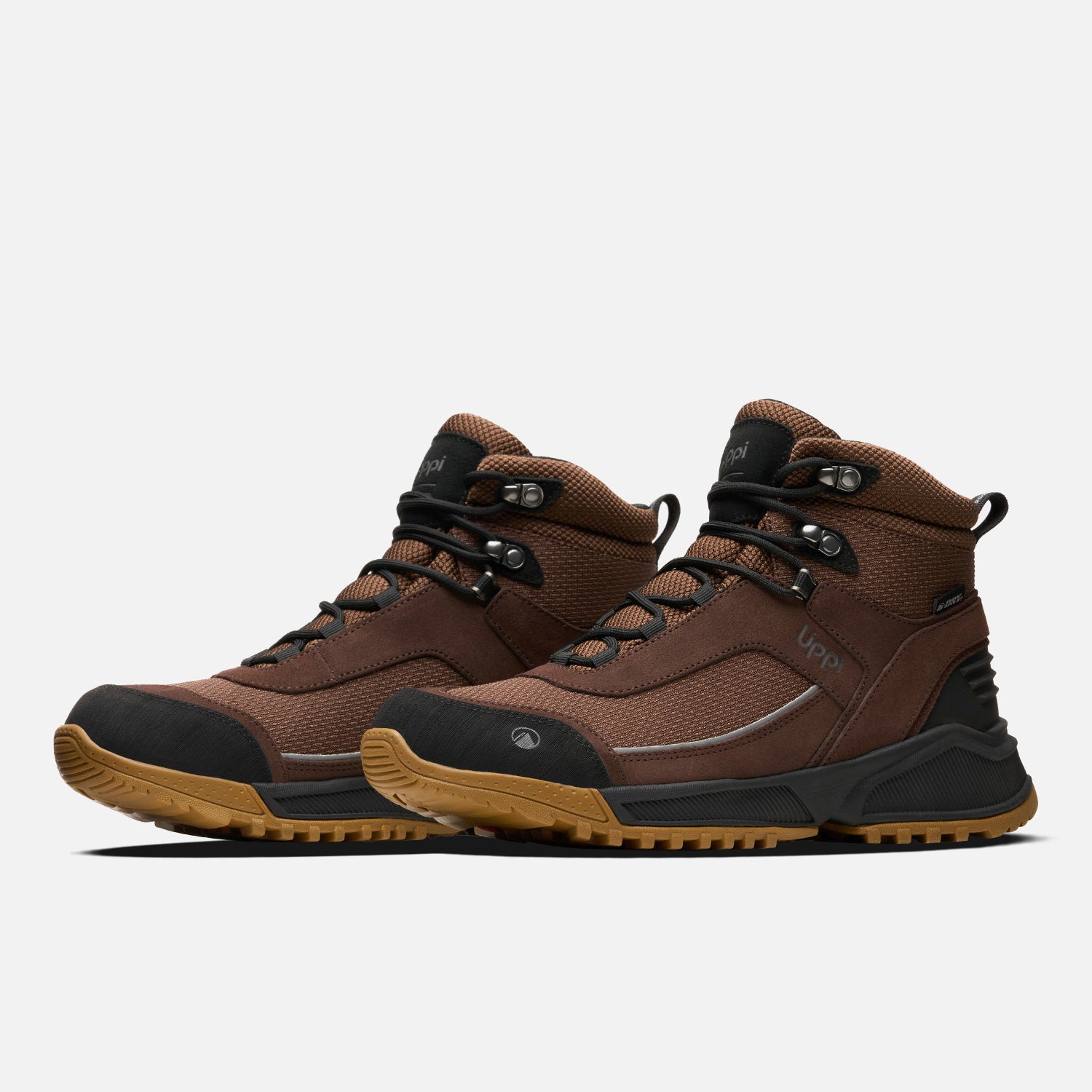 · Capellada: Cuero Cow Suede y poliéster. · Forro: Poliéster y membrana B-Dry. · Plantilla: Poliéster y EVA. · Suela: Goma y Phylon.