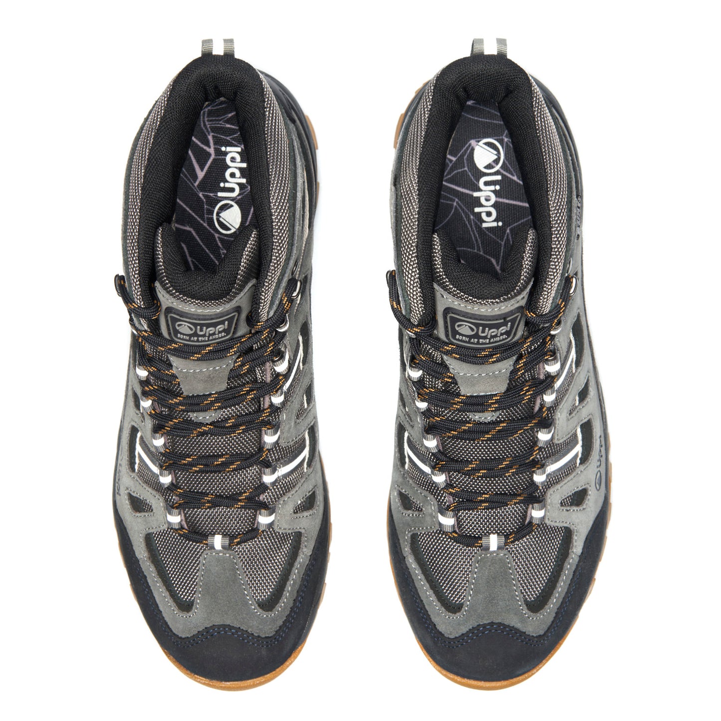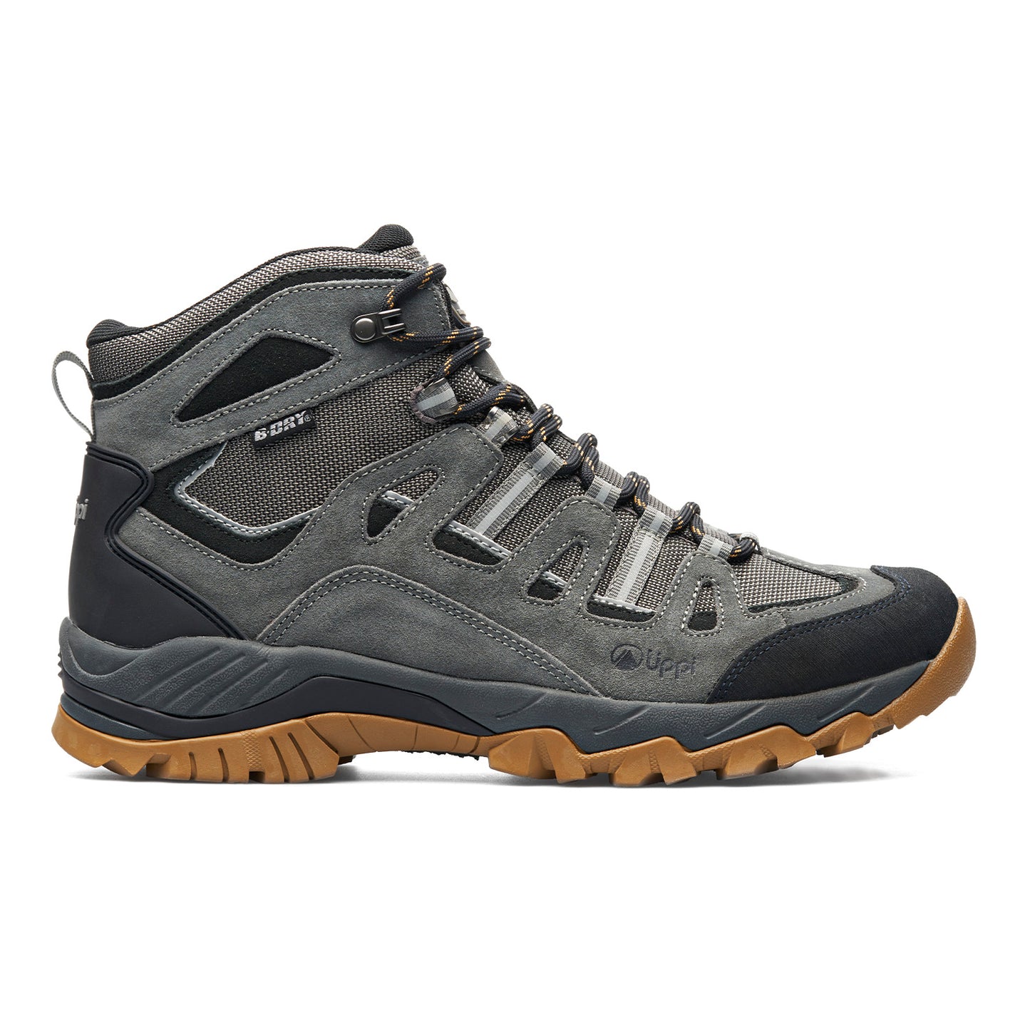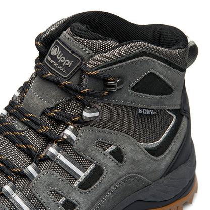 · Botín hiking. · Durable, impermeable y cómodo. · Caña media; estabilidad y seguridad. · Capellada de cuero Cow Suede hidrofugado y malla poliéster resistente a la abrasión. · Refuerzos de goma en talón y puntera. · Forro membrana B-Dry impermeable. · Suela de goma de gran agarre. · Entresuela de EVA y pieza de TPU para mayor soporte. · Plantilla de EVA antibacterial. · Pasacordones de cinta reflectante y gancho de ajuste rápido en la parte superior.