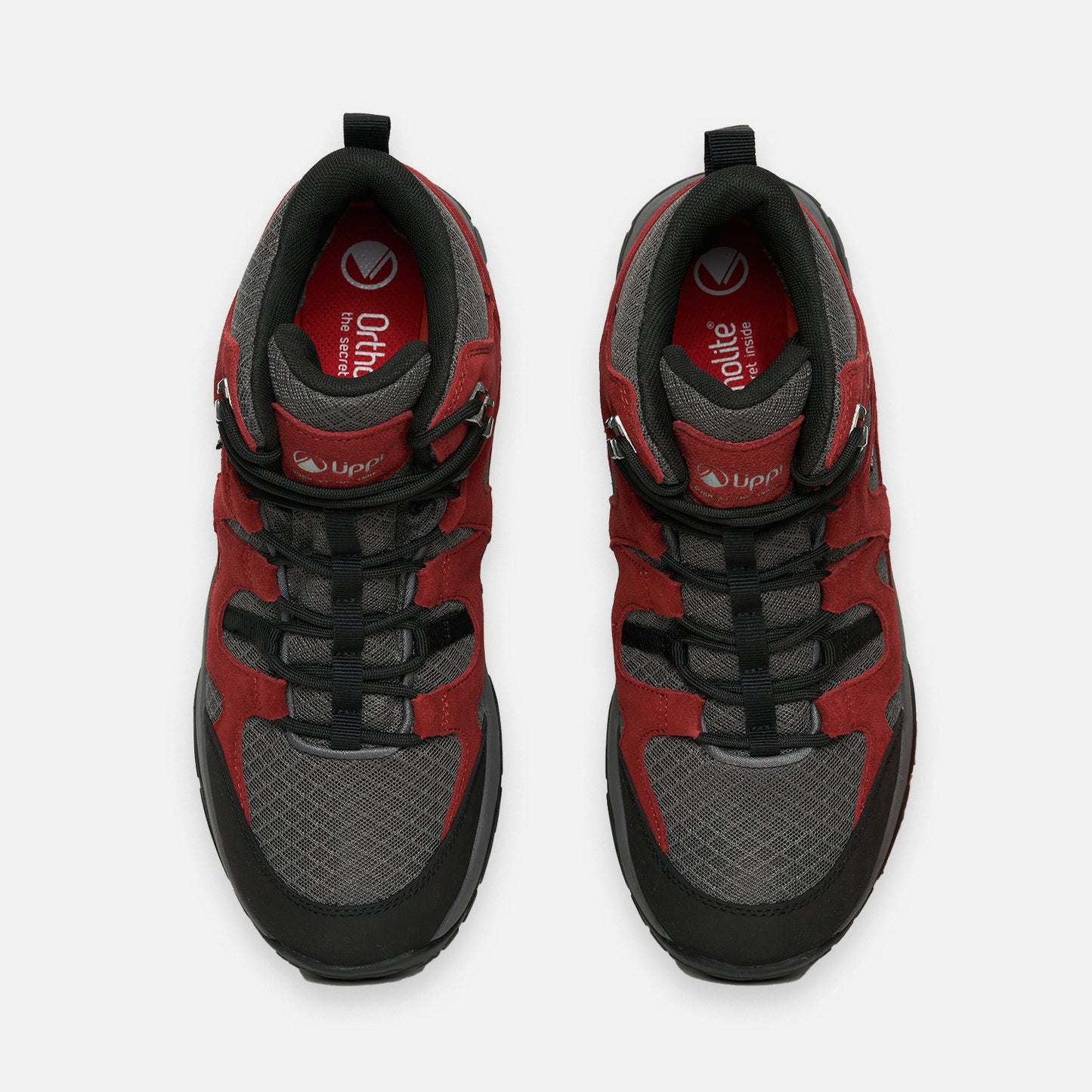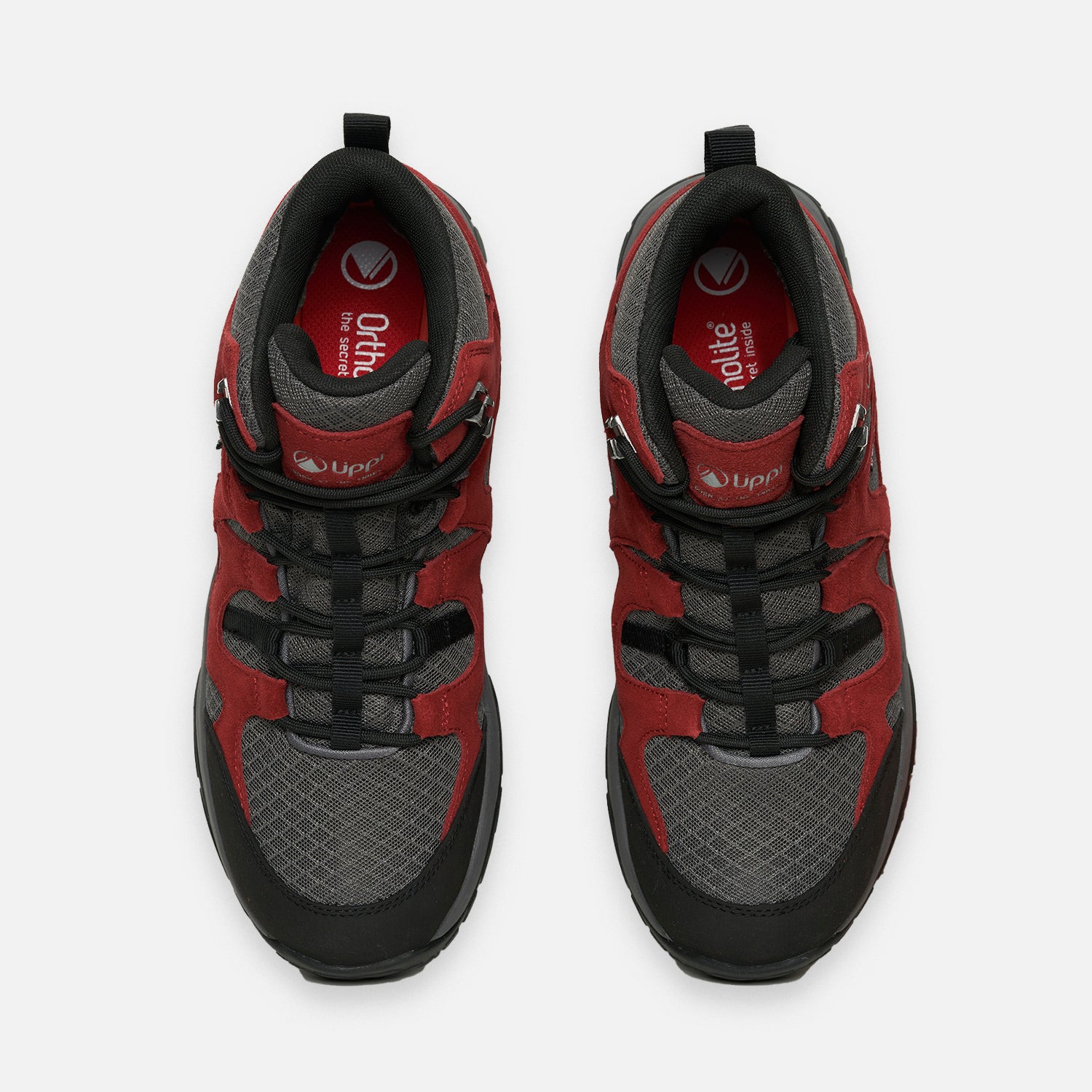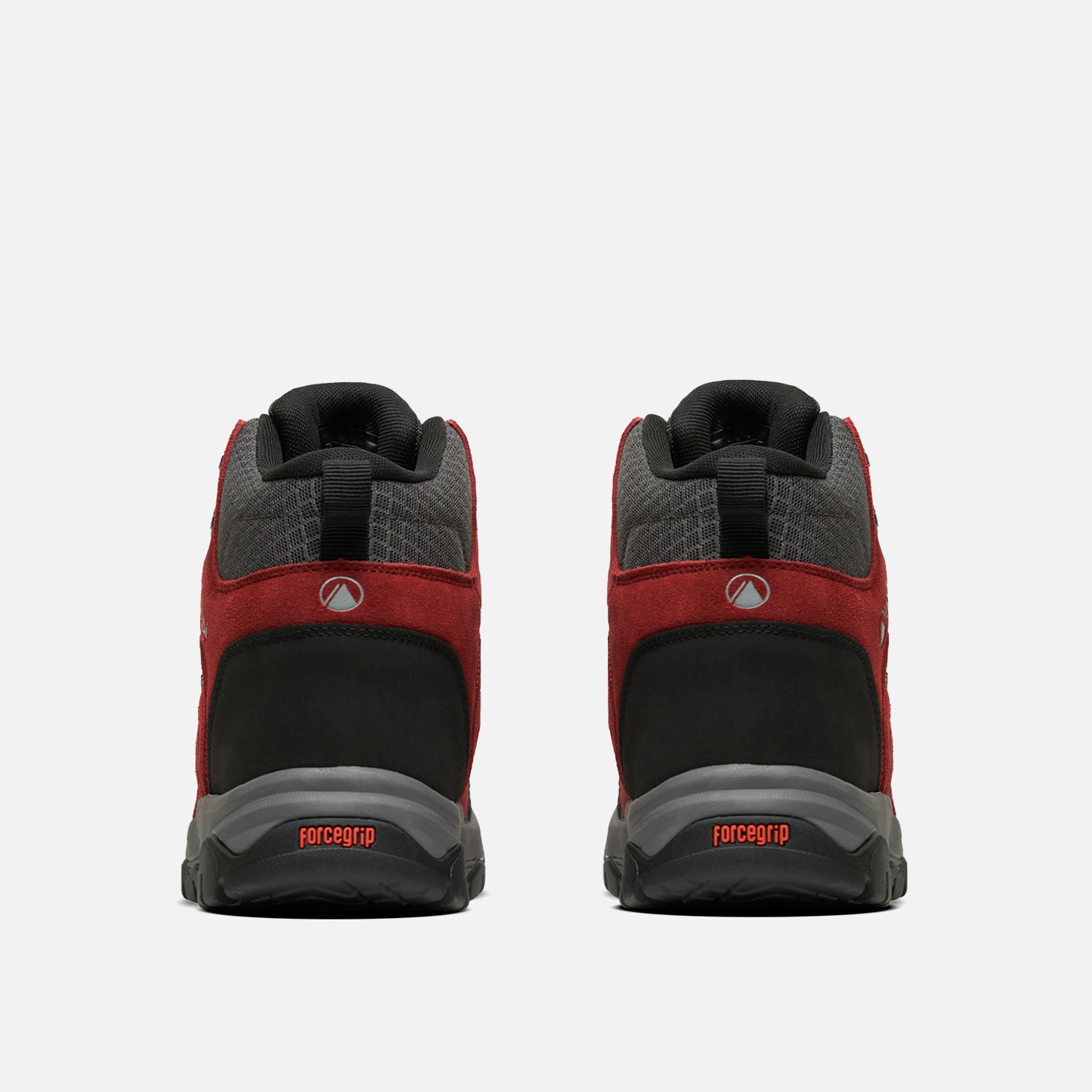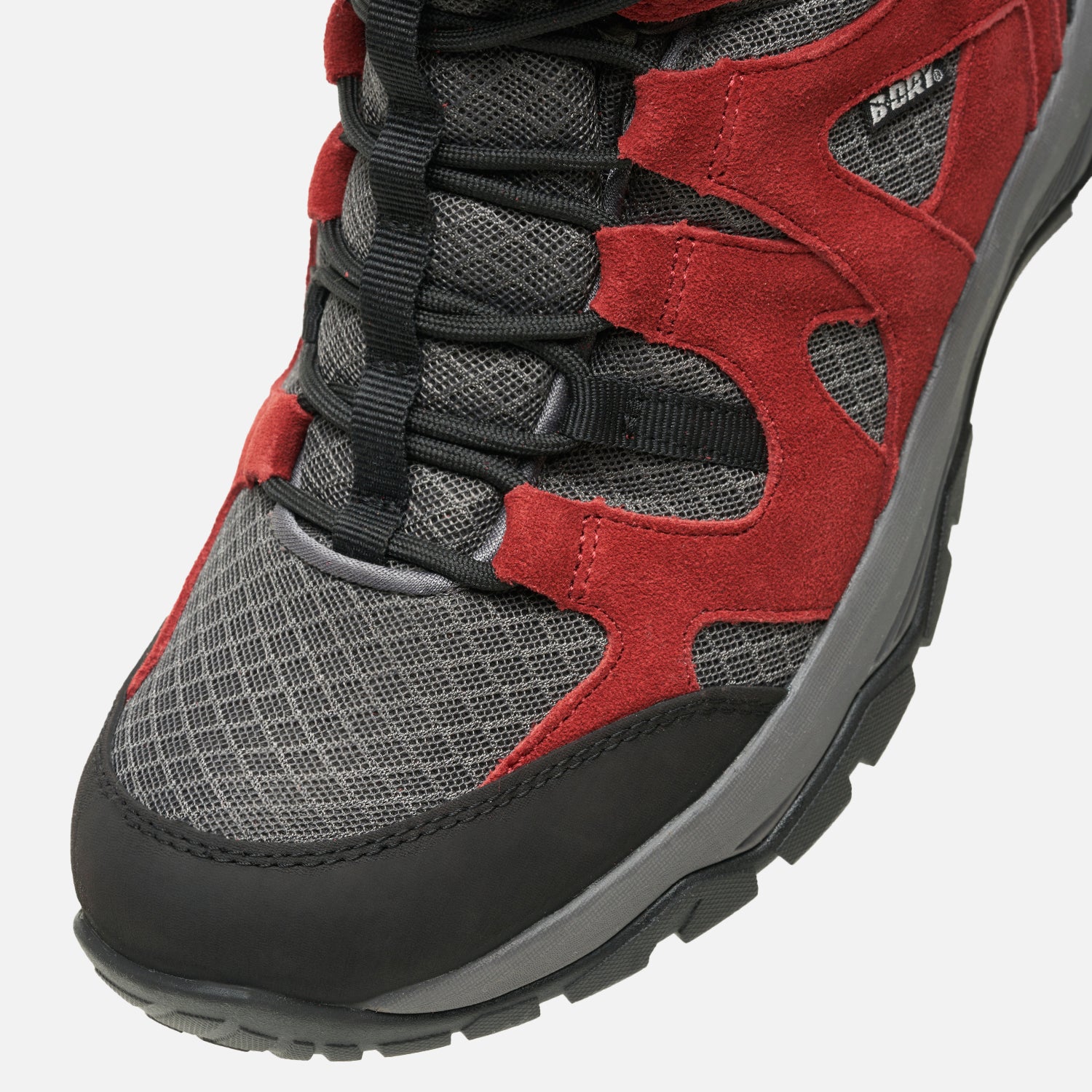 · Botín hiking · Durable, impermeable y cómodo. · Caña media; estabilidad y seguridad. · Capellada de cuero Cow Suede hidrofugado y malla sintética resistente a la abrasión. · Refuerzos de goma en talón y puntera. · Forro membrana B-Dry impermeable. · Suela de goma de gran agarre. · Entresuela de EVA. · Plantilla Ortholite de espuma antibacterial. · Pasacordones de cinta y ganchos de ajuste rápido en la parte superior.