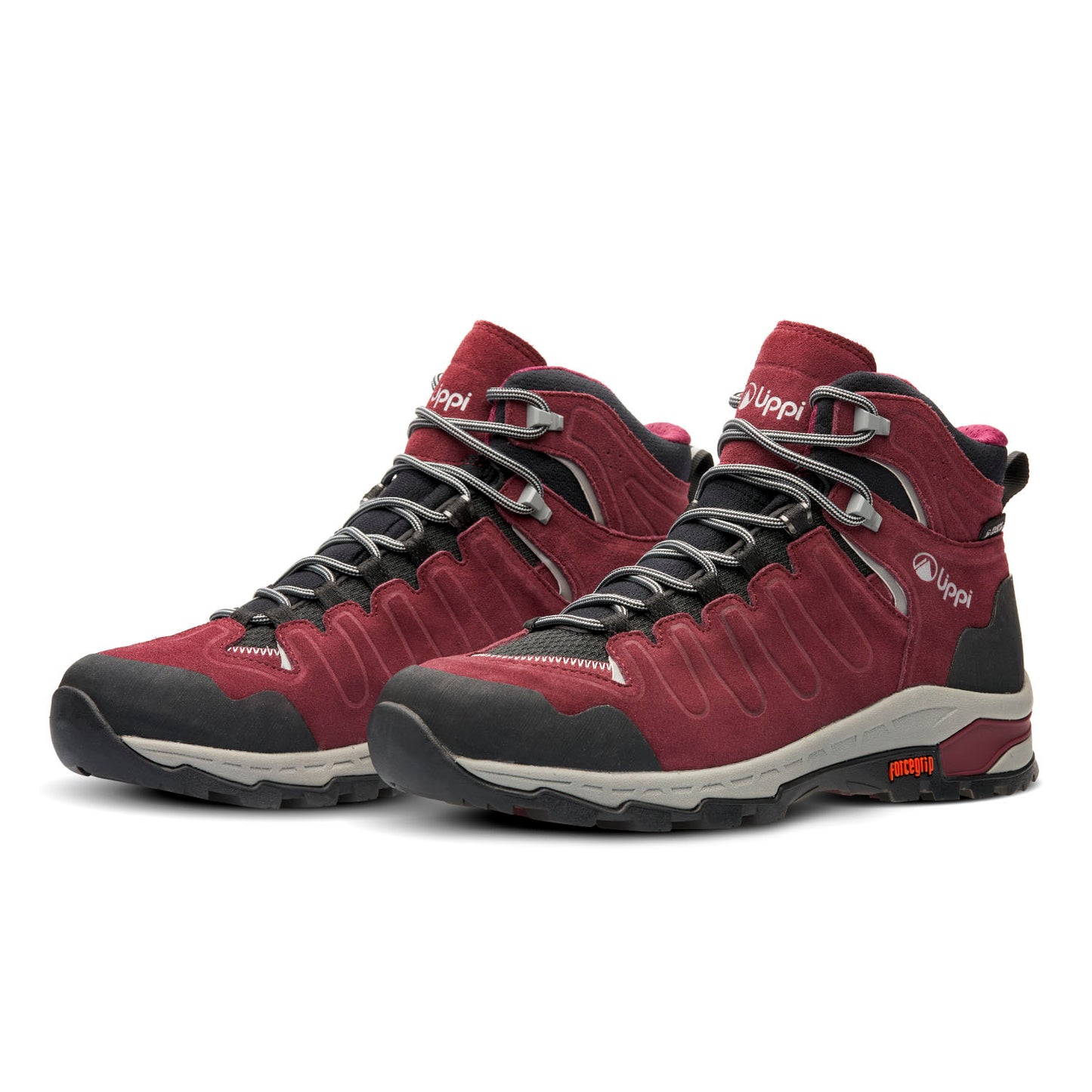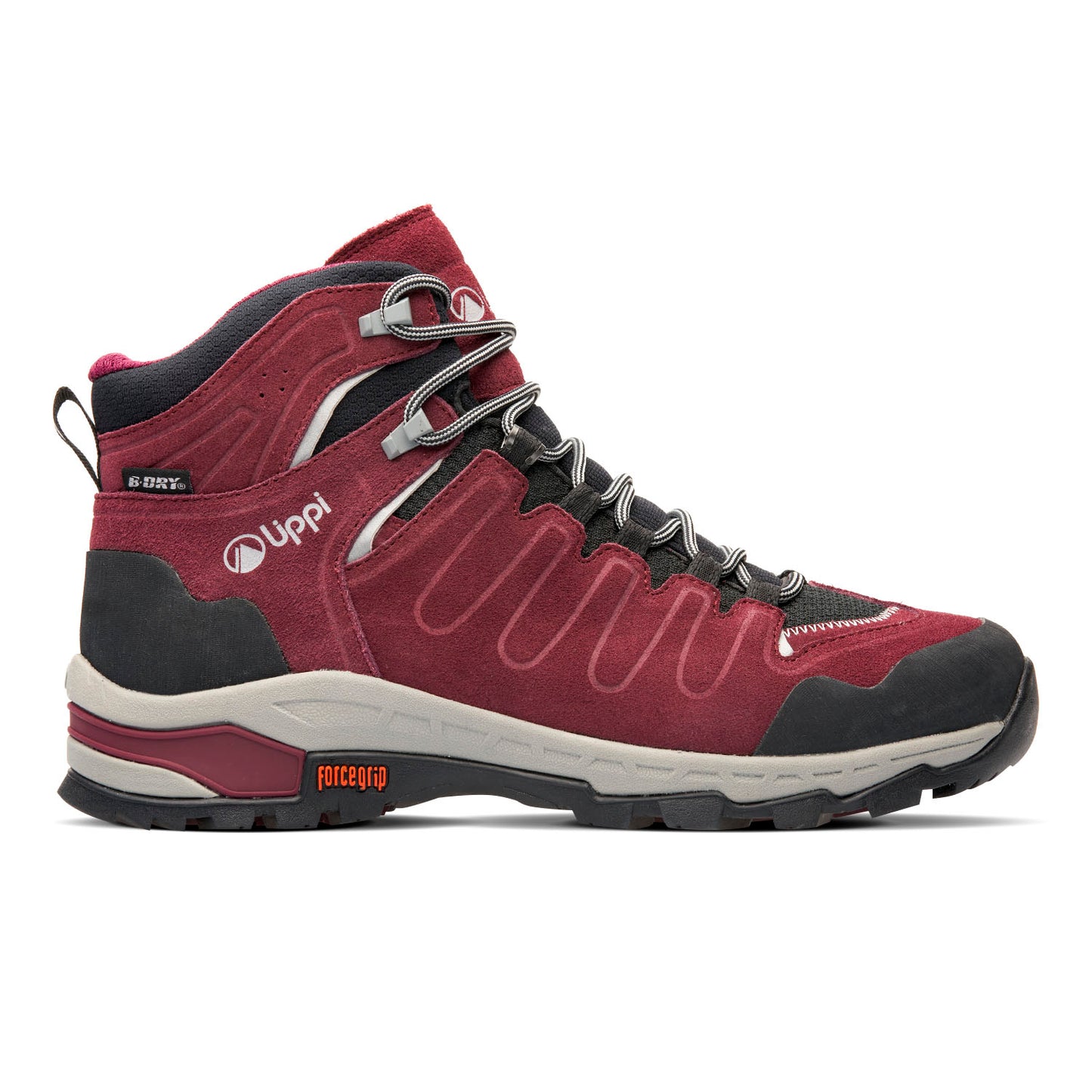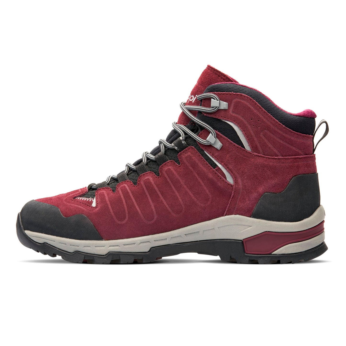 · Botin hiking · Capellada de cuero Cow Suede hidrofugado y malla de nailon resistente a la abrasión · Refuerzos de goma en talón y puntera · Forro membrana B·Dry impermeable · Suela Forcegrip de goma de gran agarre · Entresuela de EVA y pieza de TPU para mayor soporte · Plantilla Ortholite de espuma antibacterial · Pasacordones de cinta y ganchos de ajuste rápido en la parte superior · Detalles reflectantes