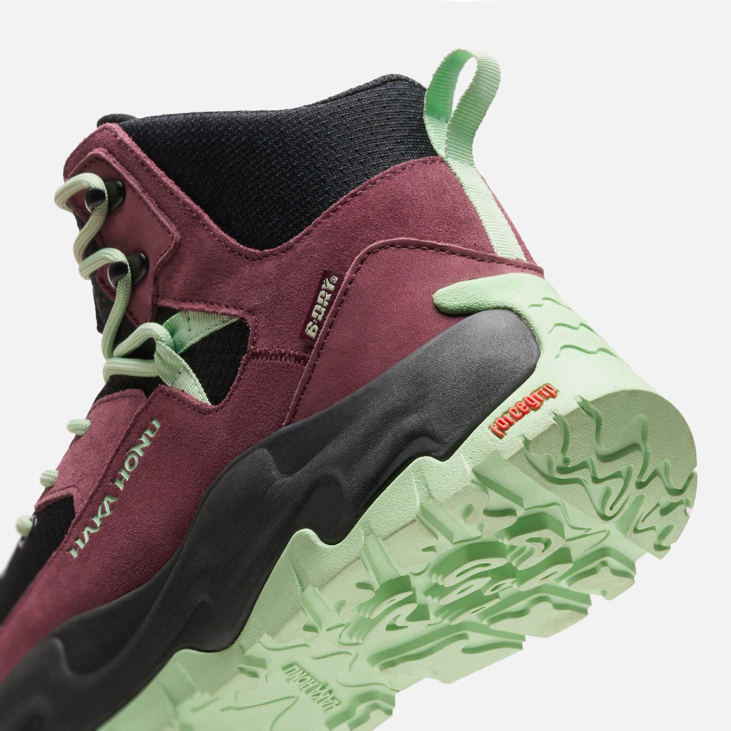 Botín Hiking. Capellada textil, Cuero Cow suede y Nubuck. Forro membrana B-Dry impermeable y poliéster. Suela Forcegrip antideslizante. Entresuela de EVA. Plantilla Ortholite de espuma antibacterial. Peso: 558 gramos