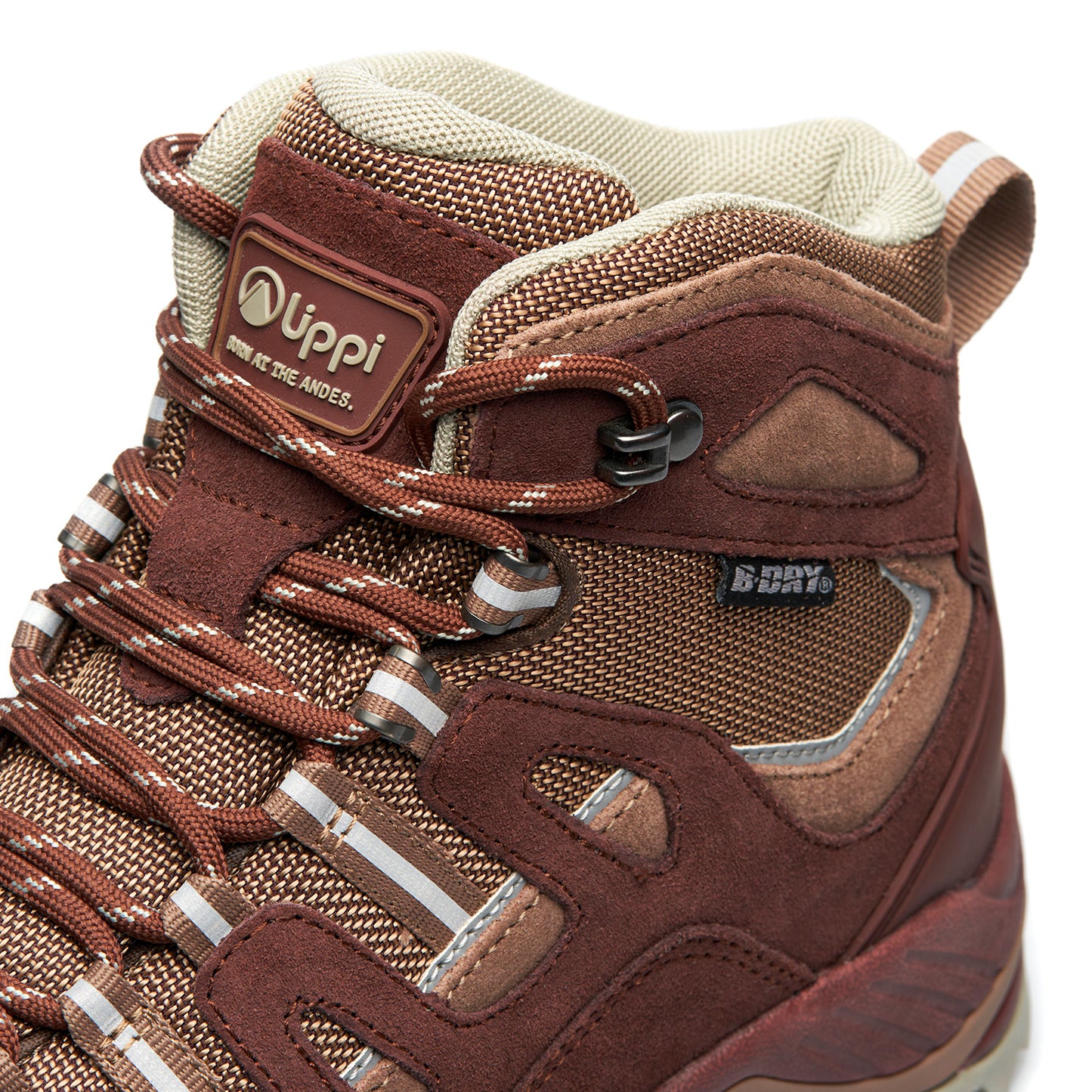 · Botín hiking. · Durable, impermeable y cómodo. · Caña media; estabilidad y seguridad. · Capellada de cuero Cow Suede hidrofugado y malla poliéster resistente a la abrasión. · Refuerzos de goma en talón y puntera. · Forro membrana B-Dry impermeable. · Suela de goma de gran agarre. · Entresuela de EVA y pieza de TPU para mayor soporte. · Plantilla de EVA antibacterial. · Pasacordones de cinta reflectante y gancho de ajuste rápido en la parte superior.