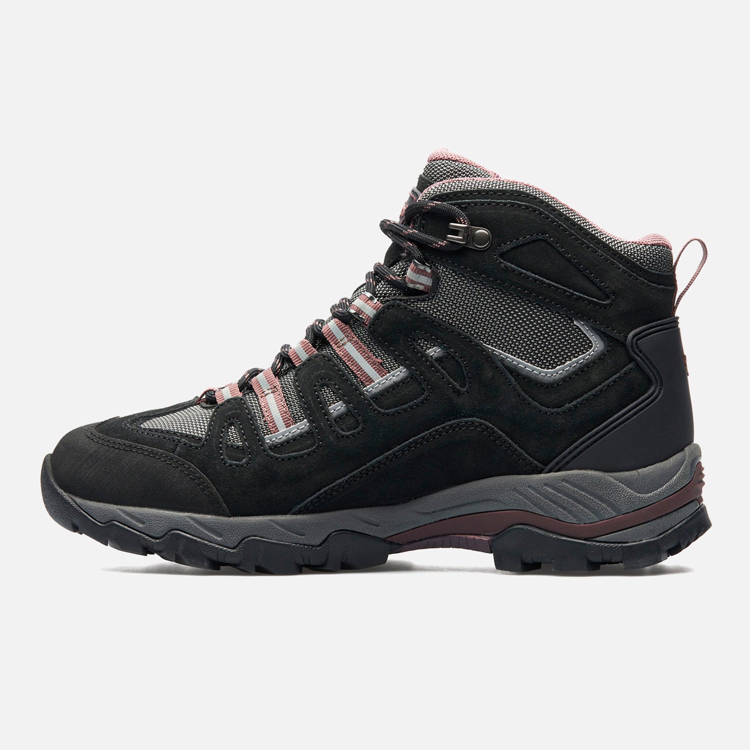 Entresuela: EVA y TPU. Suela: Goma. Plantilla: EVA antibacterial. Forro: membrana B-DRY®. Capellada: Cuero Cow Suede hidrofugado y malla poliéster.
