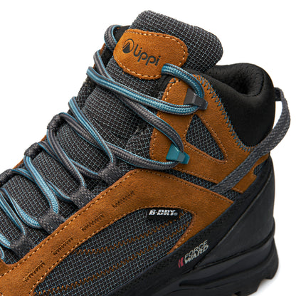 · Botín hiking robusto · Capellada de cuero Cow Suede hidrofugado y malla de nailon ultra resistente. · Protección de goma en los costados y piezas de goma en puntera y talón. · Membrana impermeable B·Dry y cuello suave de lycra. · Suela Vibram de goma para hiking. · Entresuela de EVA y soporte de TPU en talón. · Plantilla Ortholite antibacterial de EVA y espuma. · Pasadores de cinta y ganchos de ajuste rápido en la parte superior.