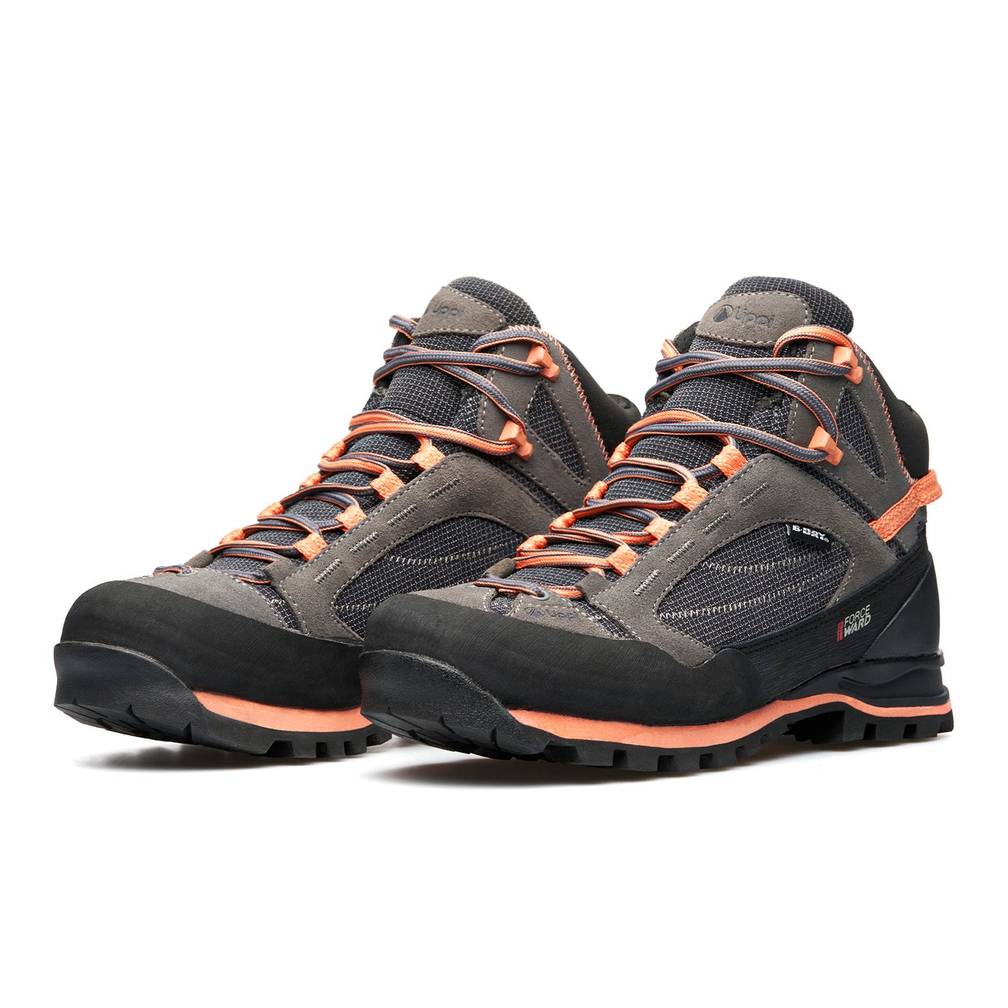 · Botín hiking robusto · Capellada de cuero Cow Suede hidrofugado y malla de nailon ultra resistente. · Protección de goma en los costados y piezas de goma en puntera y talón. · Membrana impermeable B·Dry y cuello suave de lycra. · Suela Vibram de goma para hiking. · Entresuela de EVA y soporte de TPU en talón. · Plantilla Ortholite antibacterial de EVA y espuma. · Pasadores de cinta y ganchos de ajuste rápido en la parte superior.