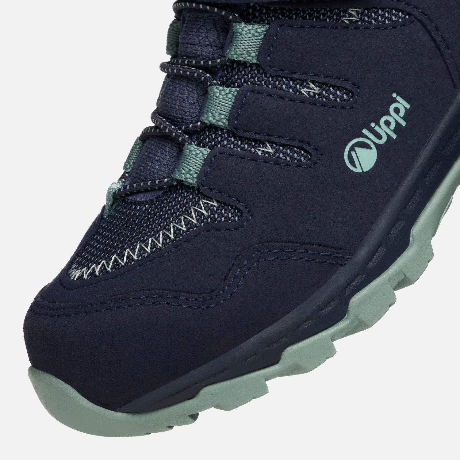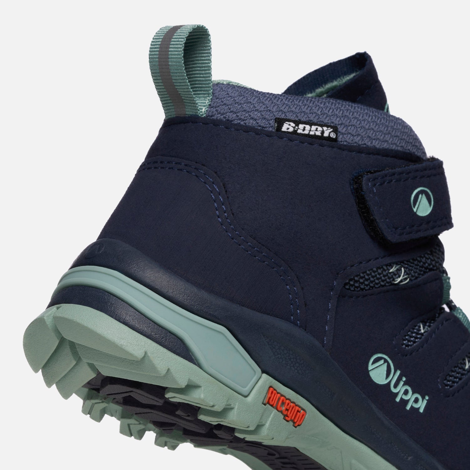 · Botín hiking niño/a. · Caña media; estabilidad y seguridad. · Capellada de Microfiber Suede y malla de nailon resistente a la abrasión. · Refuerzos de goma en talón y puntera. · Forro membrana B-Dry impermeable. · Velcro de ajuste. · Suela Forcegrip de goma de gran agarre. · Entresuela de EVA y pieza de TPU para mayor soporte. · Plantilla Ortholite de espuma antibacterial. · Pasacordones de cinta. · Detalles reflectantes para mayor visibilidad.