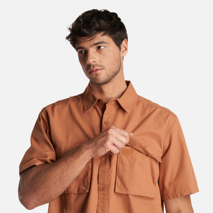 -Camisa Técnica -Tela ripstop, resistente -Manga corta -Cuello camisero -Bolsillos parche en pecho -Ventilación en la espalda -Basta recta -Tratamiento antipilling -Fit regular -Certificado GOTS.