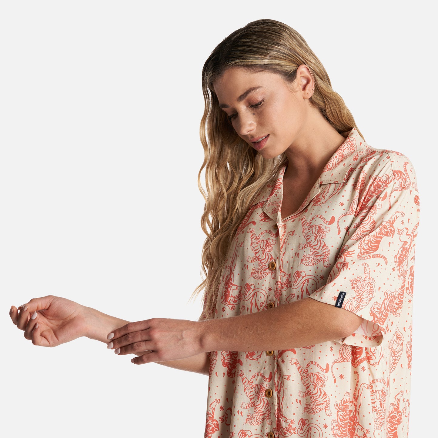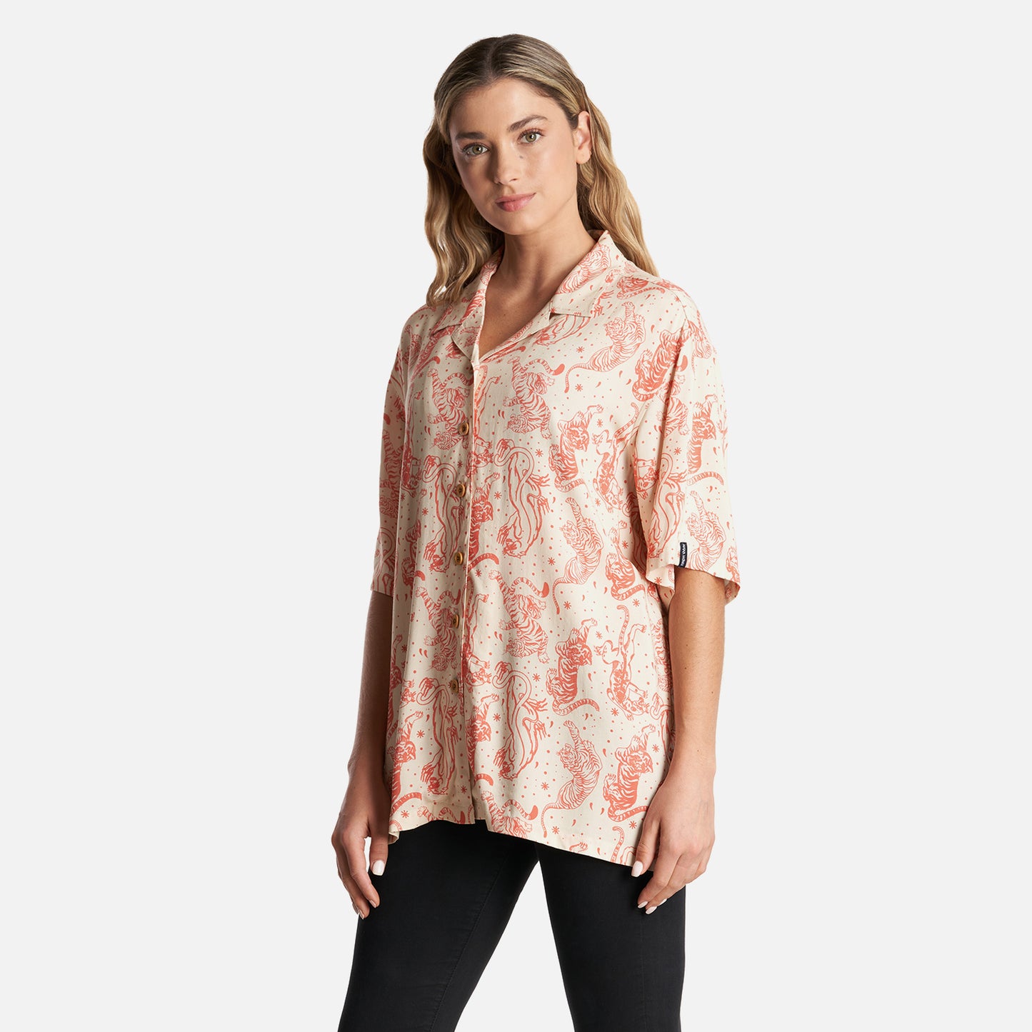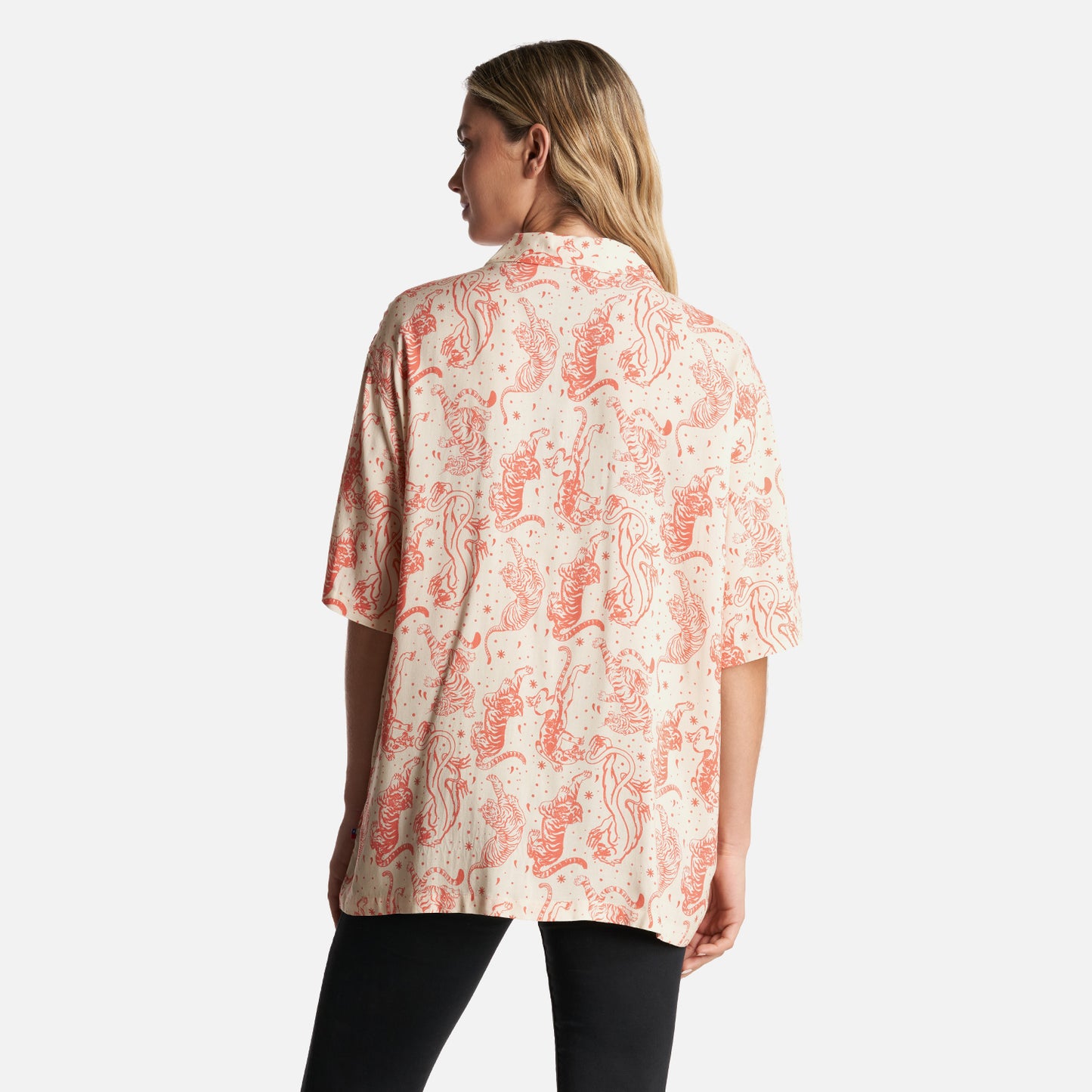 Camisa Mujer Cola de Tigre Print Beige Haka Honu