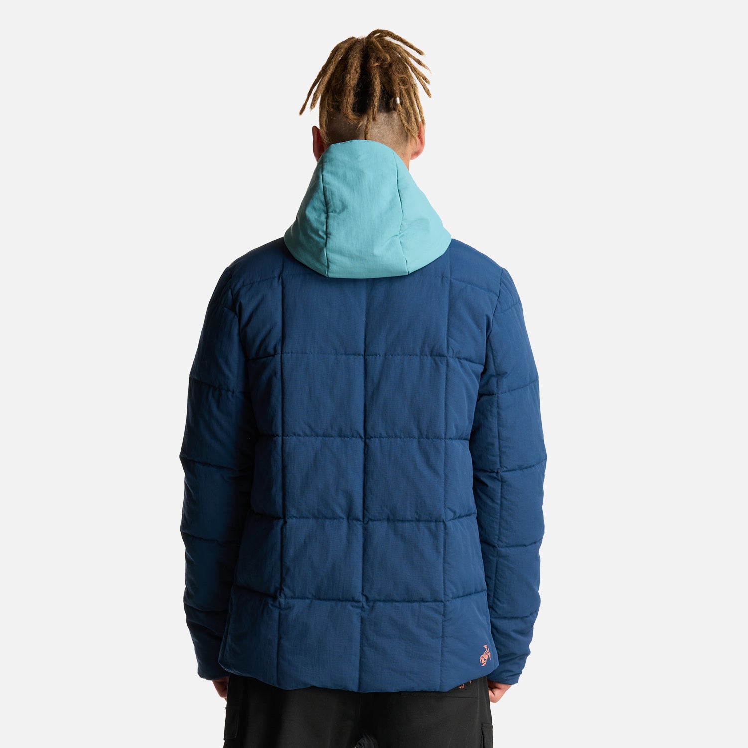 - Chaqueta insulada con gorro. - Tratamiento antipilling. - Producto Sustentable. - Relleno SteamPro 100% Poliéster reciclado con fibras de plástico reciclado del océano. - Cierre principal YKK con tapeta. - Bolsillo de pecho con cierre SBS escondido. - Gorro sin ajuste. Ajuste en basta con tankas. - Puño con elastico interior. - Gráficas: Logos estampados. - Bolsillos interior con cierre SBS. - Tapeta con broches a la vista. - Bolsillo de costados con cierre SBS escondido. - Calce regular.