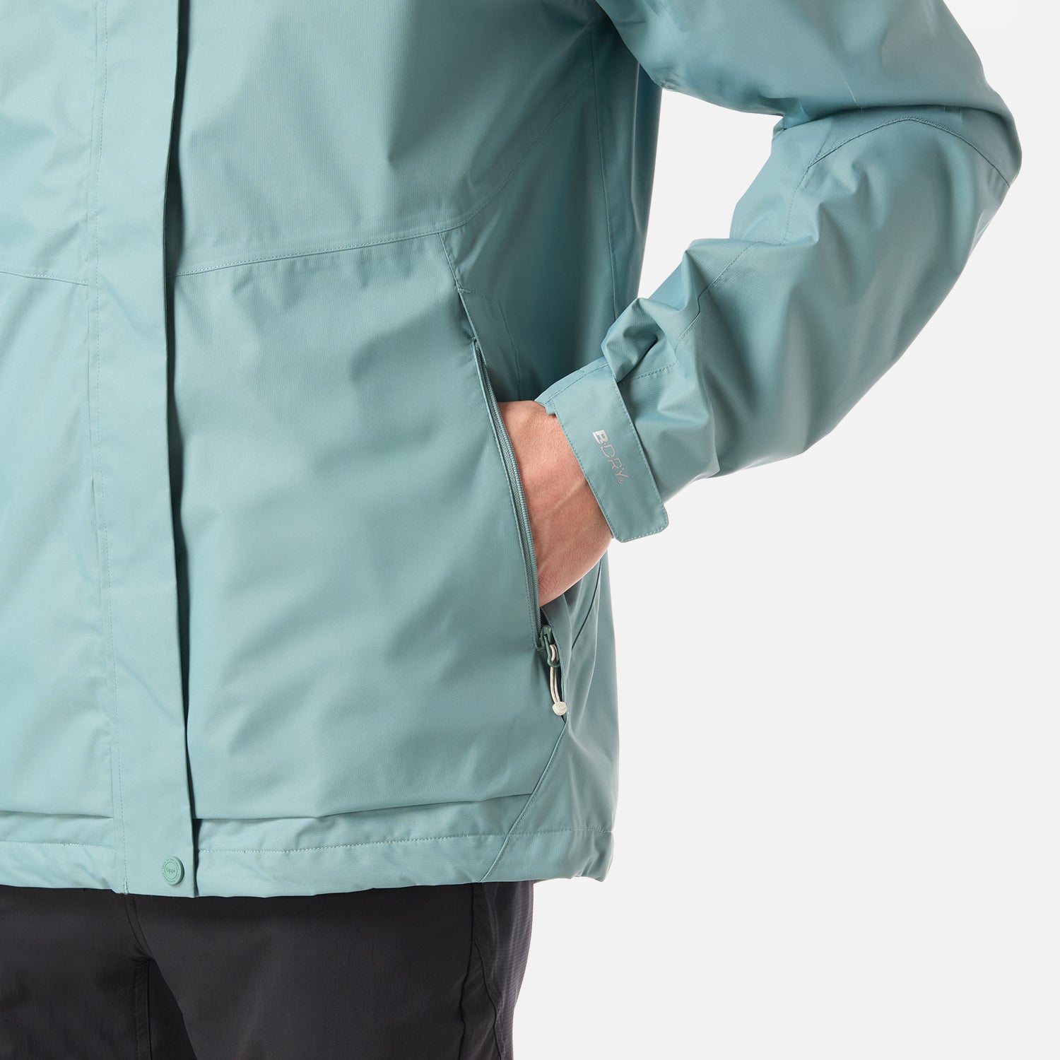 Hecha para no detenerse cuando el clima cambia. Esta chaqueta impermeable 10.000/10.000 ofrece protección confiable contra la lluvia y el viento, ideal para caminatas prolongadas, travesías con clima inestable o jornadas completas al aire libre. Su tela de poliéster reciclado en dos capas bloquea el agua y permite que el cuerpo respire, mientras el forro de malla interna suma ventilación y confort. Las costuras selladas aseguran que la humedad no entre, incluso en condiciones exigentes. Para avanzar seco, cómodo y sin interrupciones.