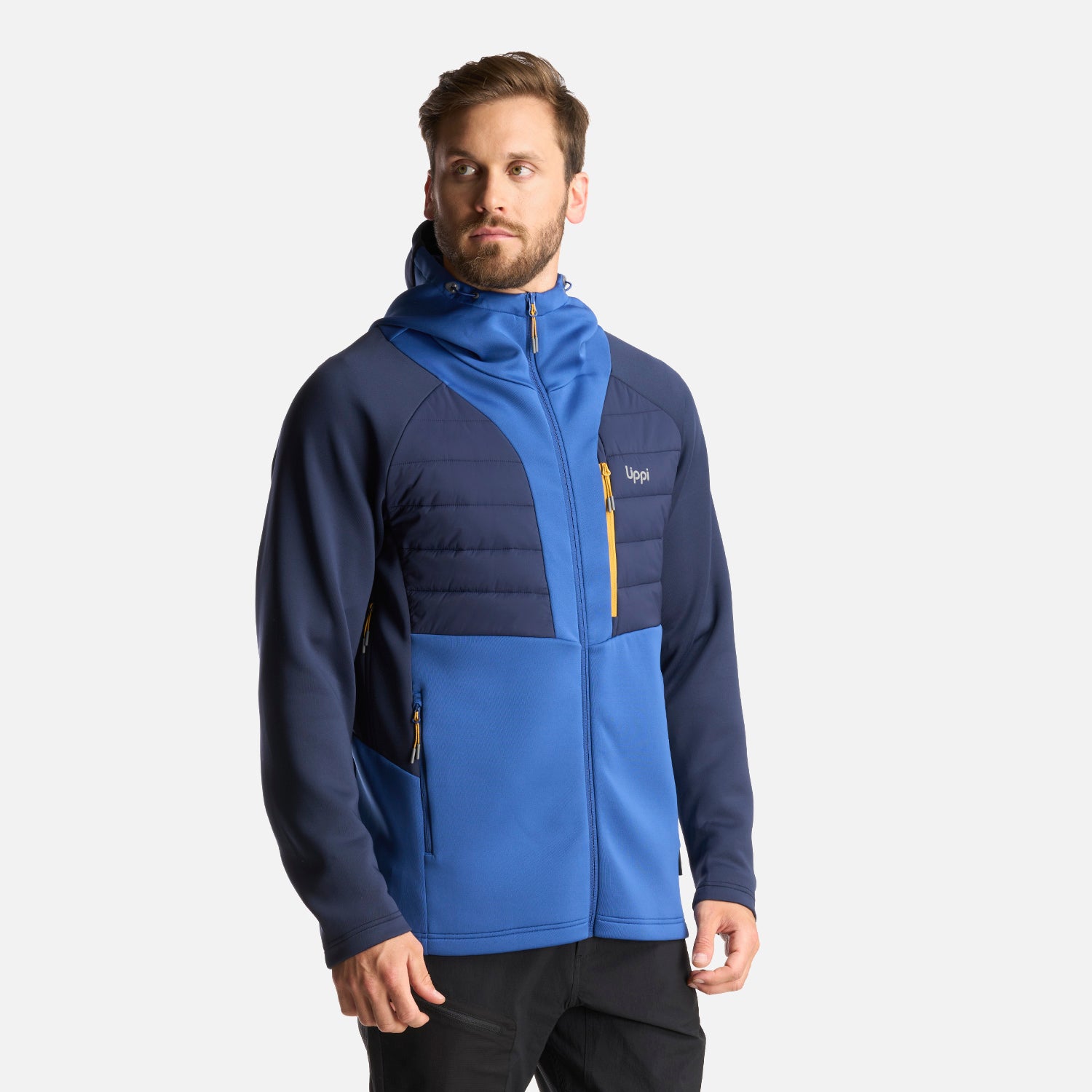 - Chaqueta híbrida elásticada, con insulado en pecho y espalda. - Cierre principal YKK. - Bolsillo de pecho con cierre YKK. - Bolsillos con cierre YKK. - Gorro con sistema de ajuste elástico. - Ventilación con cierres YKK. - Calce ajustado.