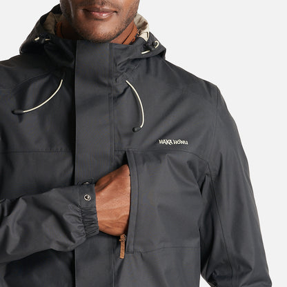 - Chaqueta impermeable 2 capas. - Producto Sustentable. - Membrana 10.000 / 10.000. - Cierre principal YKK. - Bolsillo de pecho con cierre YKK escondido. - Gorro con sistema de ajuste de tankas delanteras y traseras. - Ajuste en puños con tapeta y broches. - Gráficas: Logos estampados. - Tela interior: Forro en gorro y manga, y tela malla en cuerpo. - Tapeta con broches escondidos. - Bolsillos parche. - Calce regular.