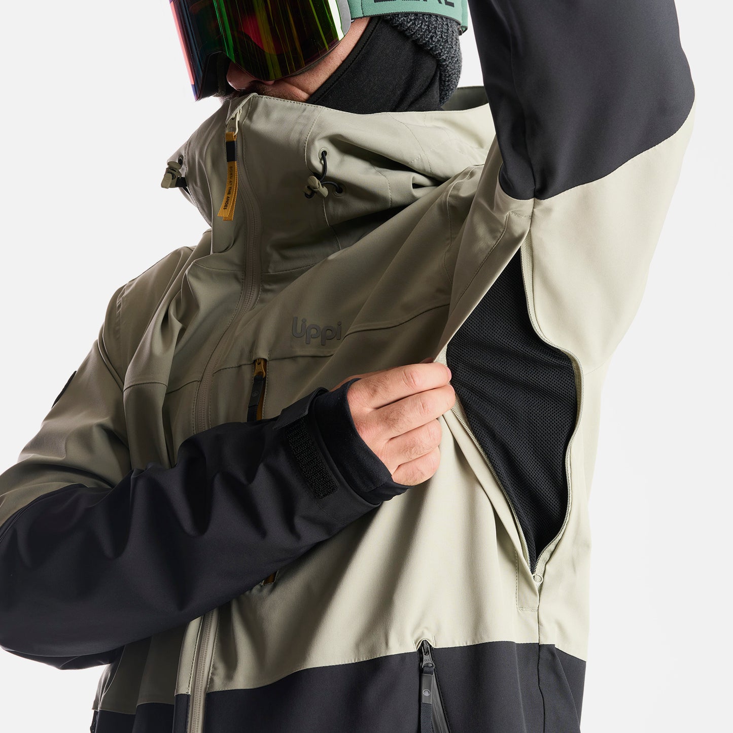 - Chaqueta de nieve impermeable. - Cierre principal YKK Aquaguard®. - Bolsillo de costados con cierre YKK escondido. - Gorro con sistema de ajuste elástico. - Ajuste elasticado en basta. - Ajuste en puños con velcro, Puño de lycra, Abertura para dedo pulgar. - Ventilación axilar con cierres YKK. - Bolsillo interior con cierre YKK, Bolsilos de malla amplios para guardar guantes o antiparras. - Calce regular