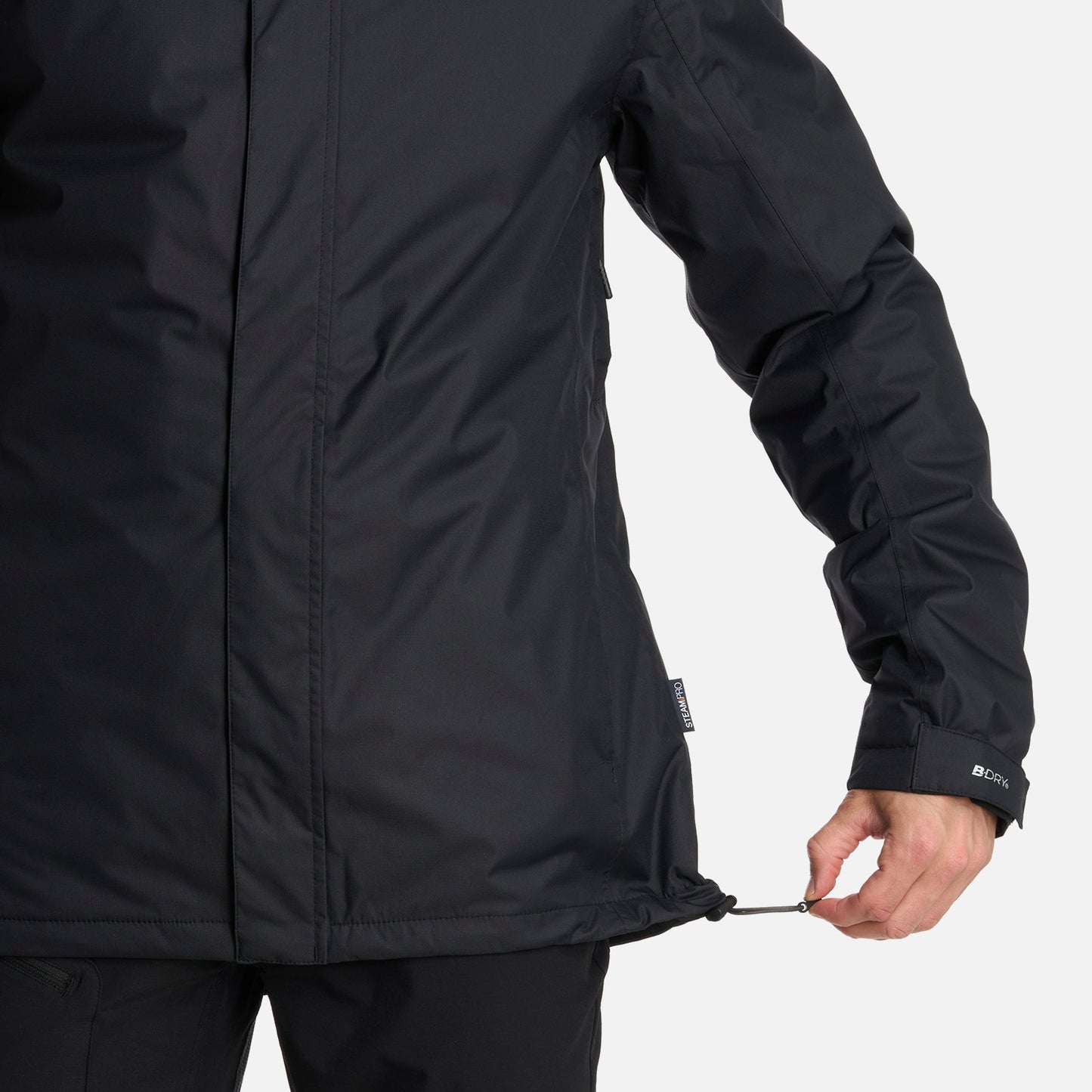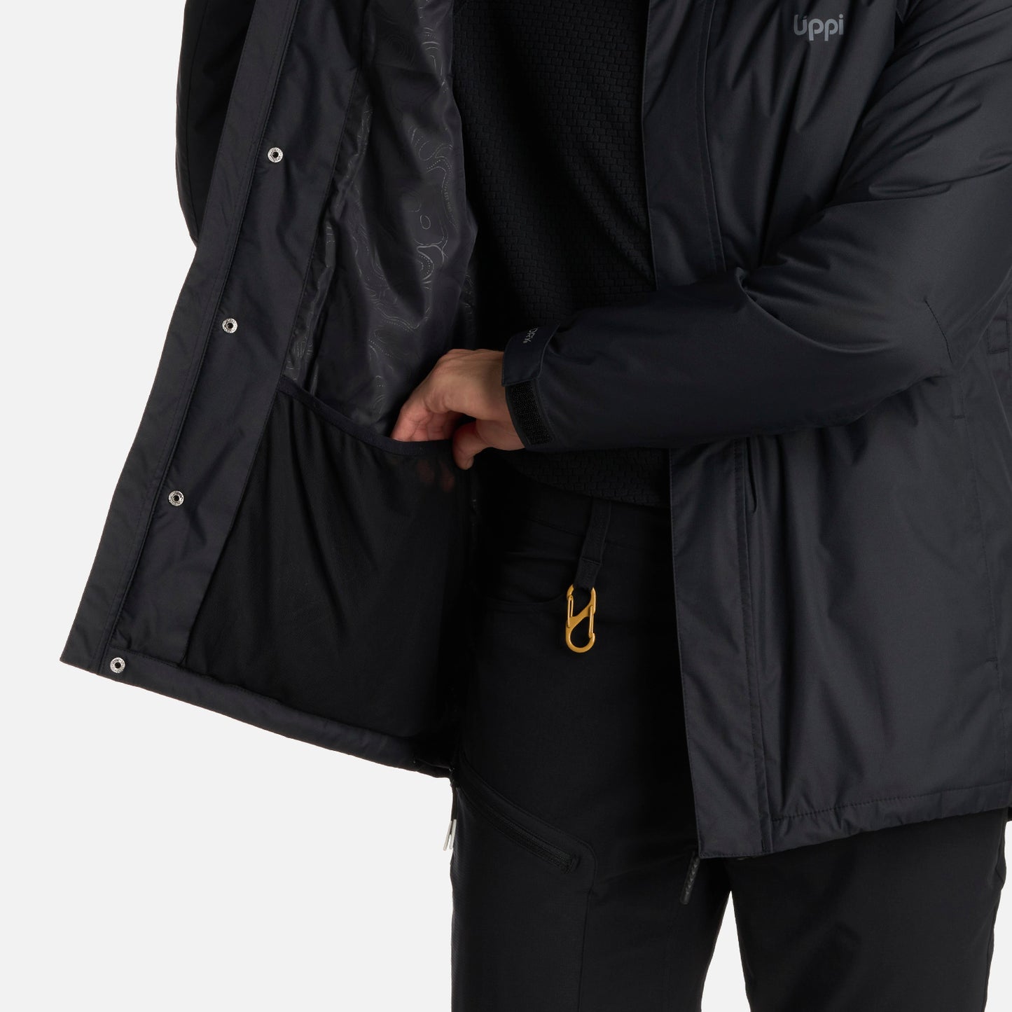 - Chaqueta impermeable e insulado. - Membrana 10.000 / 10.000. - Cierre principal YKK con tapeta. - Tapeta con broches escondidos. - Bolsillo de costados con cierre escondido. - Gorro con sistema de ajuste elástico. - Ajuste elasticado en basta. - Ajuste en puños con velcro. - Ventilación axilar con cierres YKK. - Bolsillo de malla. - Calce regular.