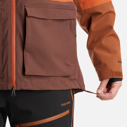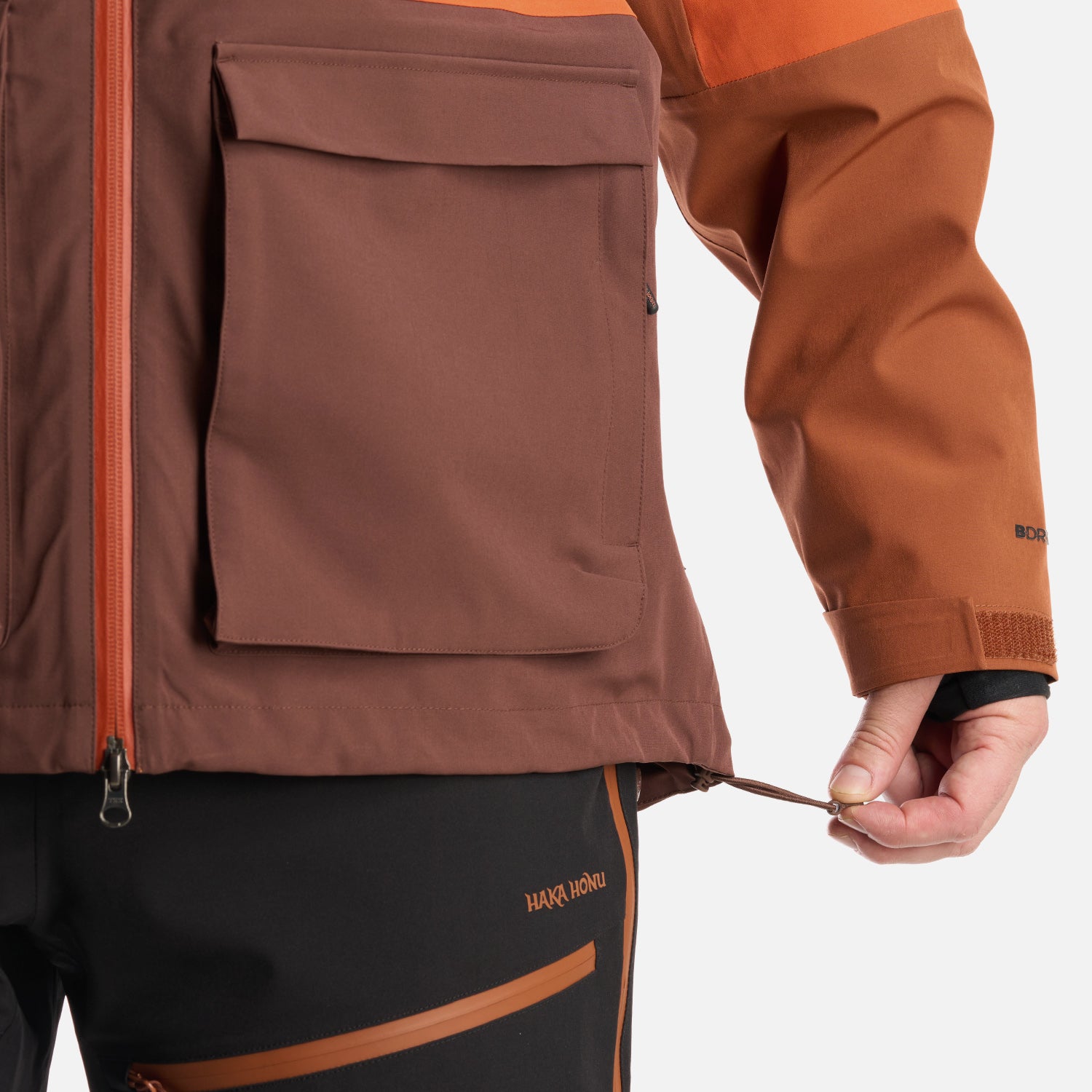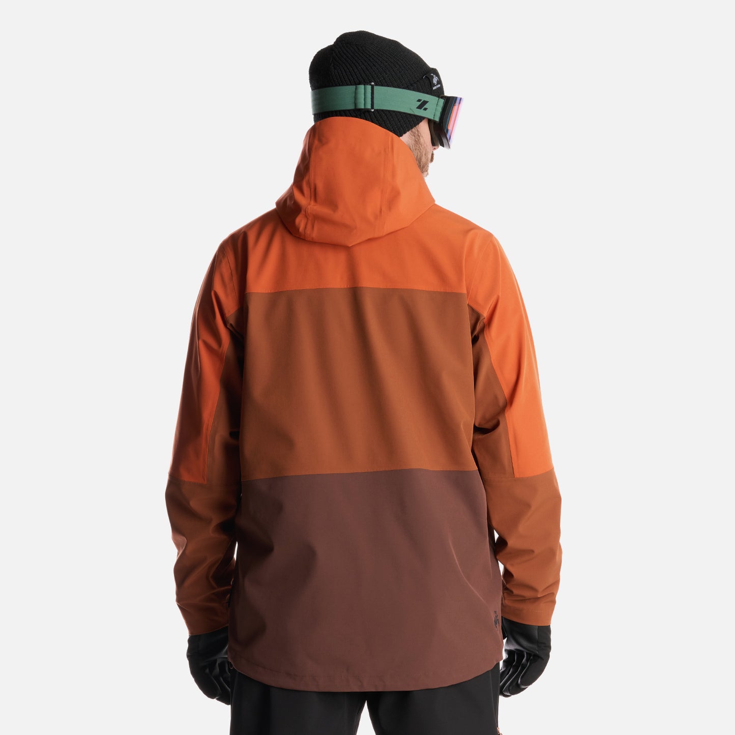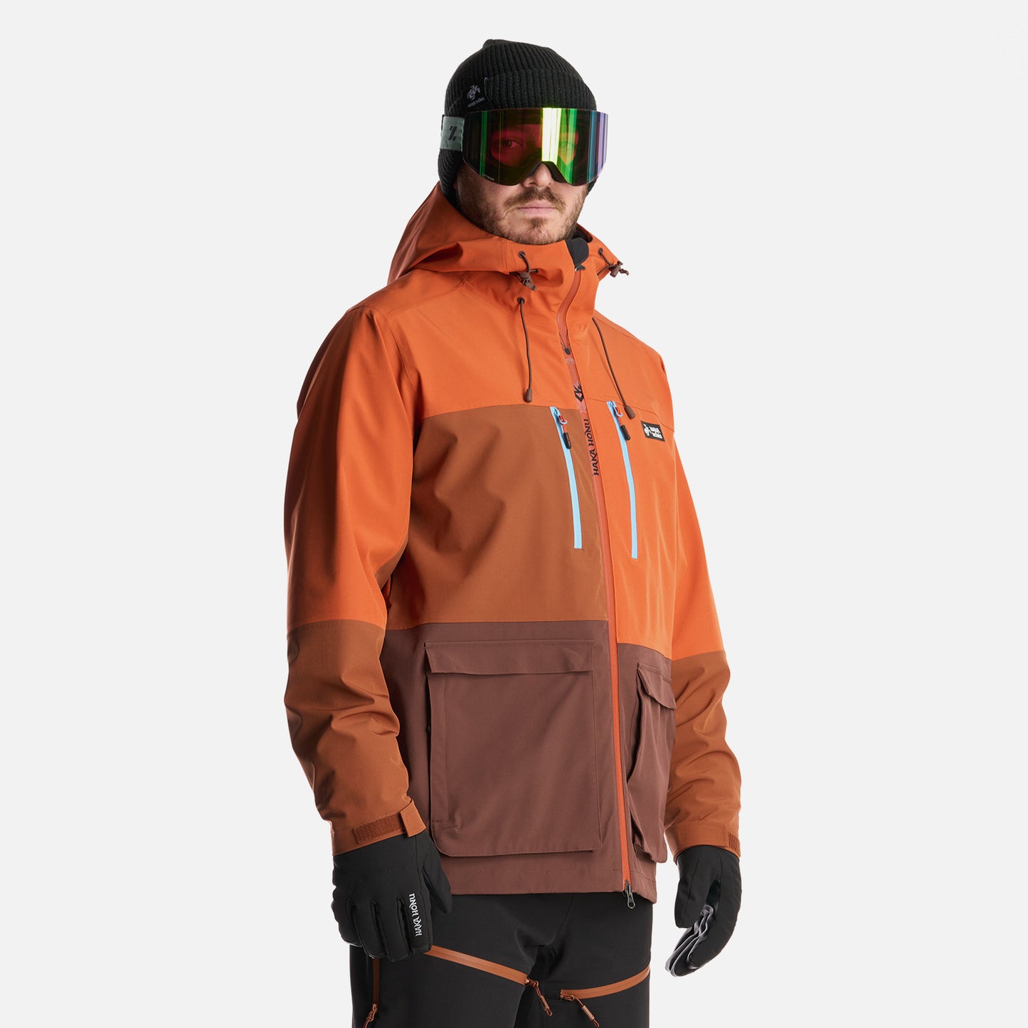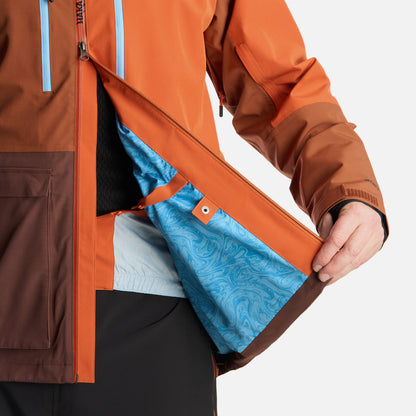 - Chaqueta impermeable para nieve. - Producto Sustentable. - Membrana 10.000 / 10.000. - Cierre principal YKK Aquaguard®. - Bolsillos con cierre YKK Aquaguard®. - Gorro con sistema de ajuste de tankas delanteras. - Ajuste en basta con tankas. - Ajuste en puños con tapeta y velcro, Puño interior de lycra, Abertura para dedo pulgar. - Ventilación con tapeta y cierres YKK. - Gráficas: Logos estampados. - Tela interior: Forro estampado. - Faldón antinieve desmontable. - Bolsillo de doble entrada. - Calce regular.