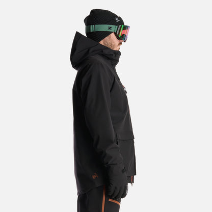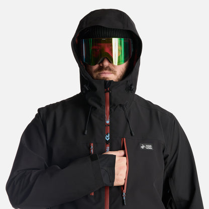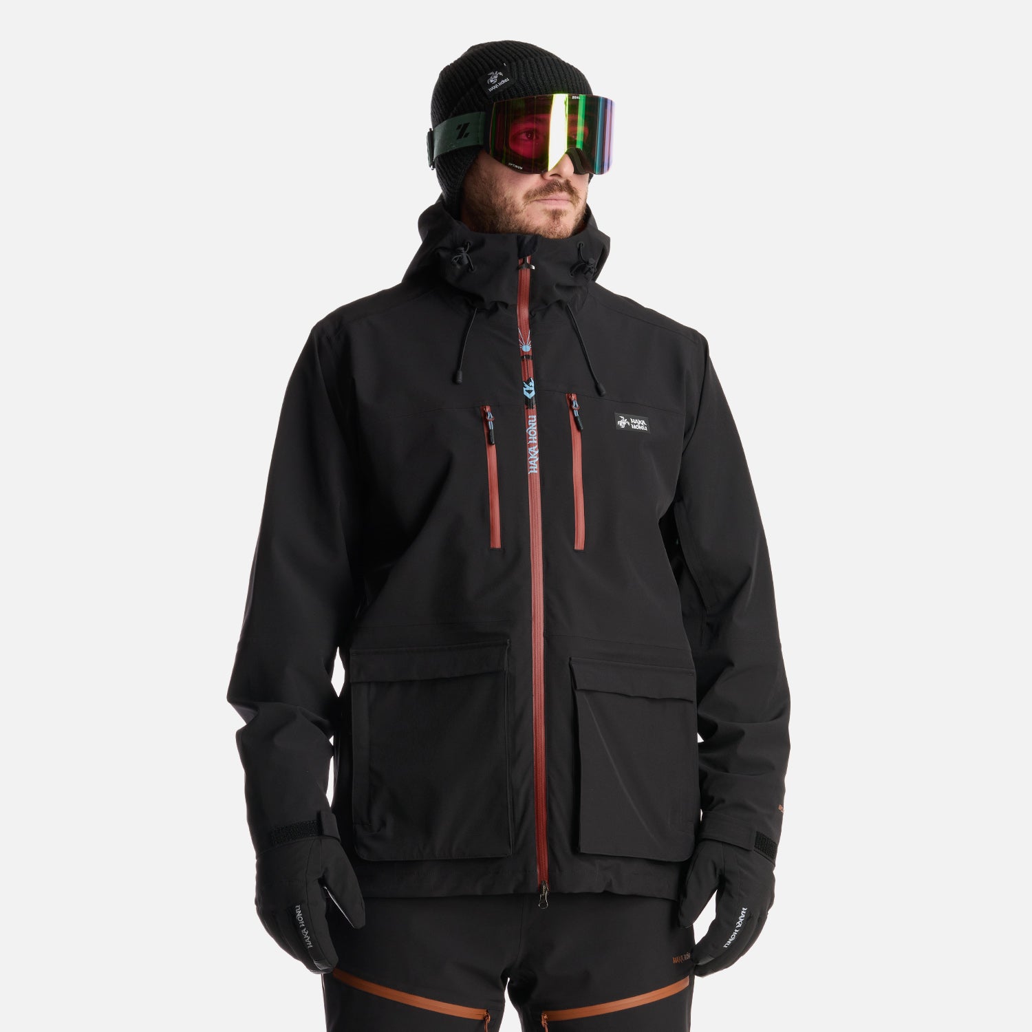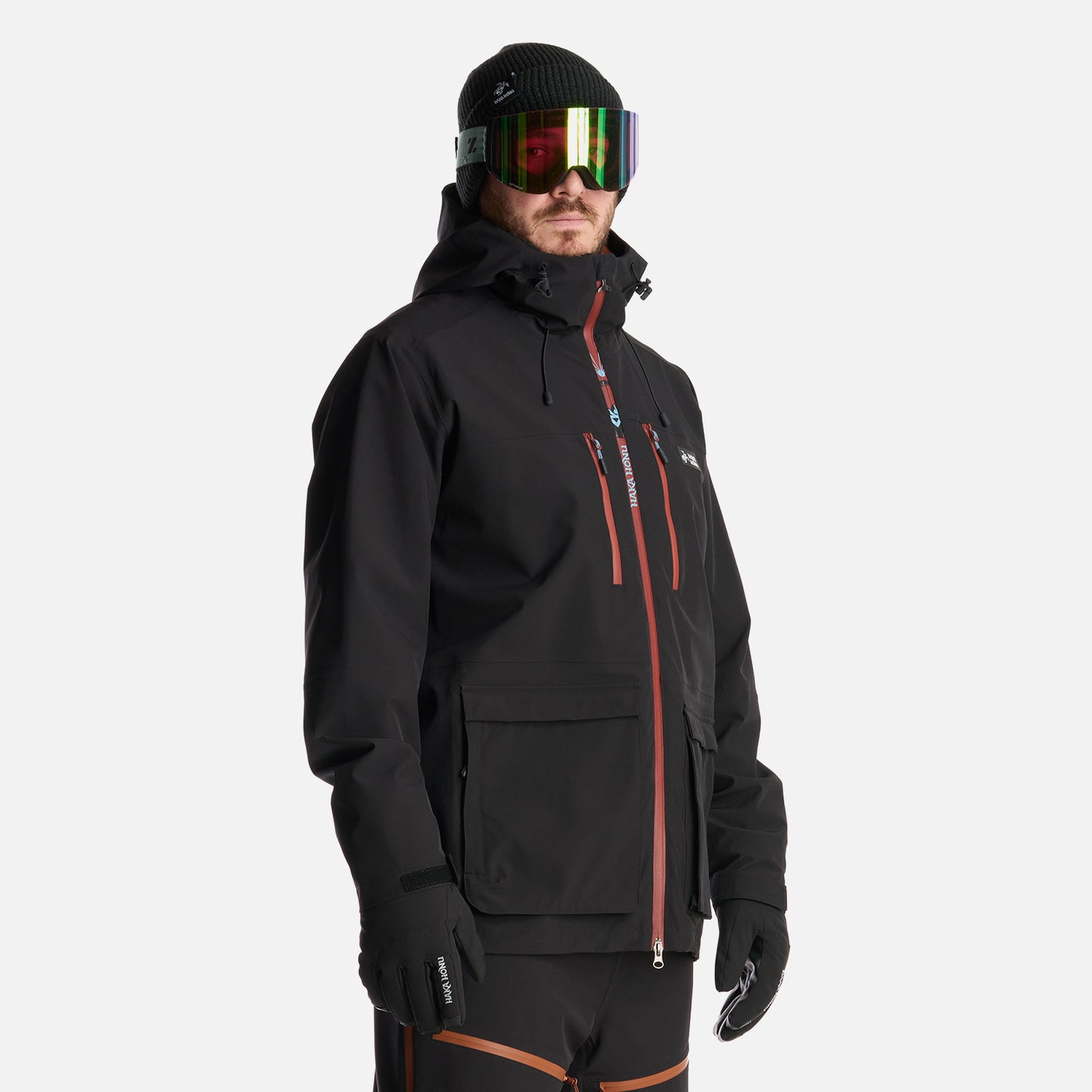 - Chaqueta impermeable para nieve. - Producto Sustentable. - Membrana 10.000 / 10.000. - Cierre principal YKK Aquaguard®. - Bolsillos con cierre YKK Aquaguard®. - Gorro con sistema de ajuste de tankas delanteras. - Ajuste en basta con tankas. - Ajuste en puños con tapeta y velcro, Puño interior de lycra, Abertura para dedo pulgar. - Ventilación con tapeta y cierres YKK. - Gráficas: Logos estampados. - Tela interior: Forro estampado. - Faldón antinieve desmontable. - Bolsillo de doble entrada. - Calce regular.