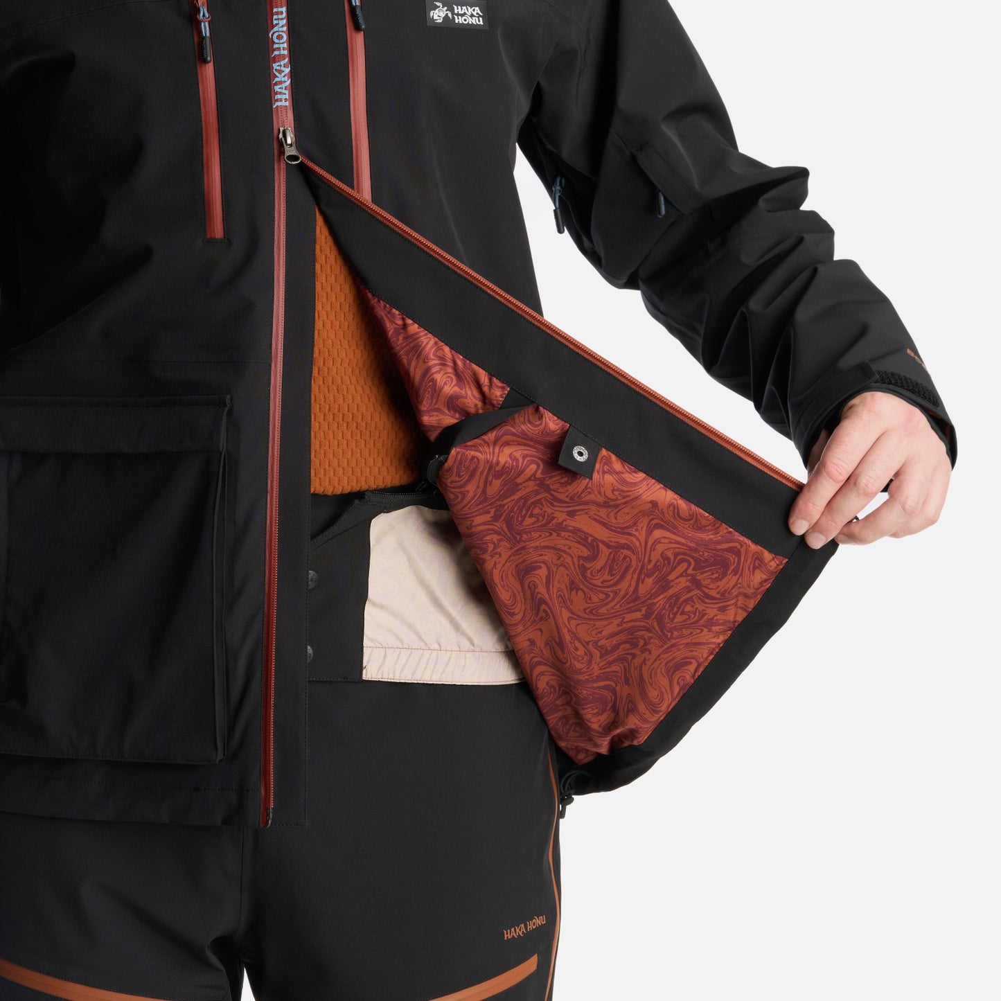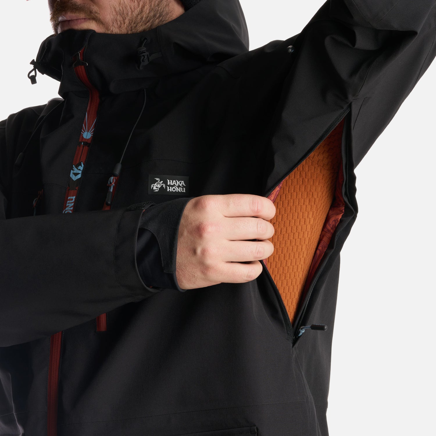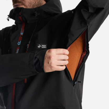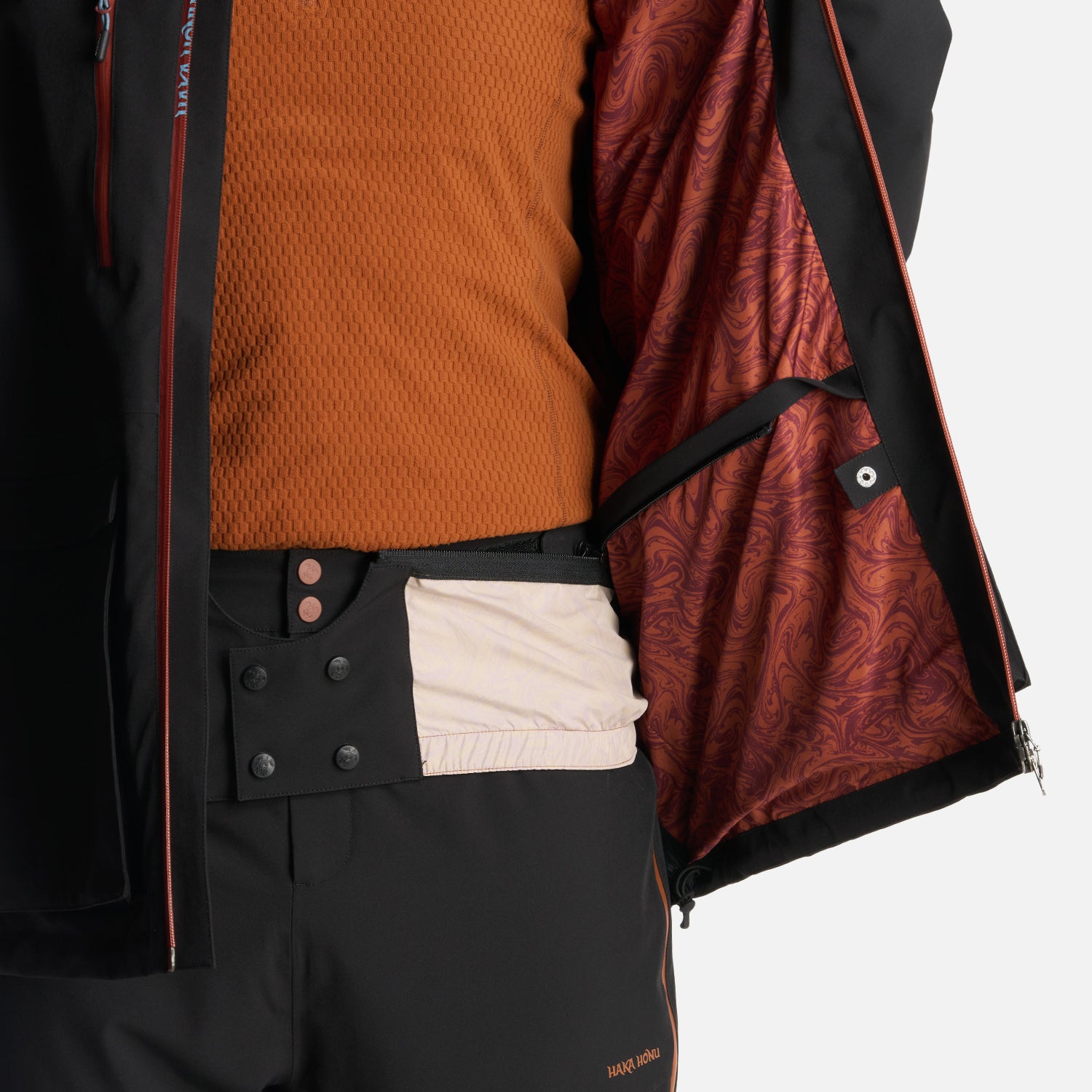 - Chaqueta impermeable para nieve. - Producto Sustentable. - Membrana 10.000 / 10.000. - Cierre principal YKK Aquaguard®. - Bolsillos con cierre YKK Aquaguard®. - Gorro con sistema de ajuste de tankas delanteras. - Ajuste en basta con tankas. - Ajuste en puños con tapeta y velcro, Puño interior de lycra, Abertura para dedo pulgar. - Ventilación con tapeta y cierres YKK. - Gráficas: Logos estampados. - Tela interior: Forro estampado. - Faldón antinieve desmontable. - Bolsillo de doble entrada. - Calce regular.
