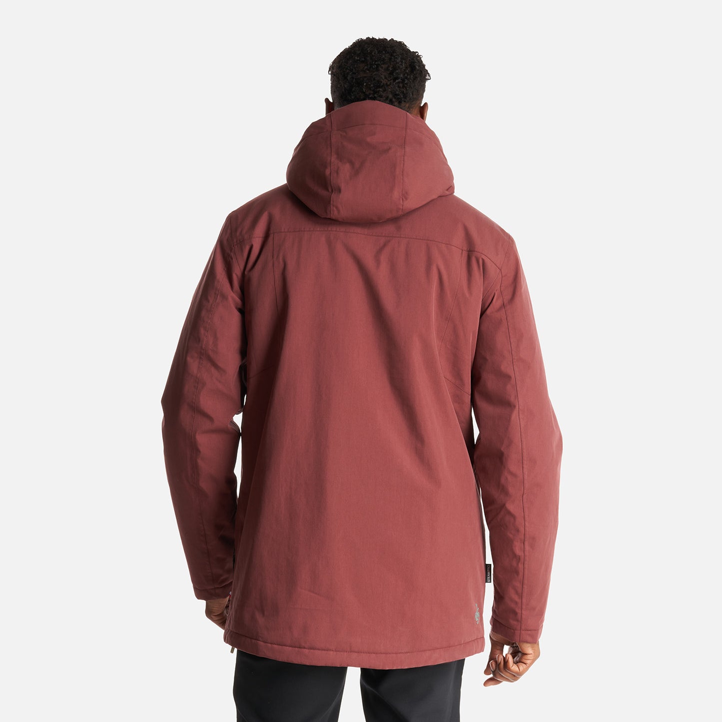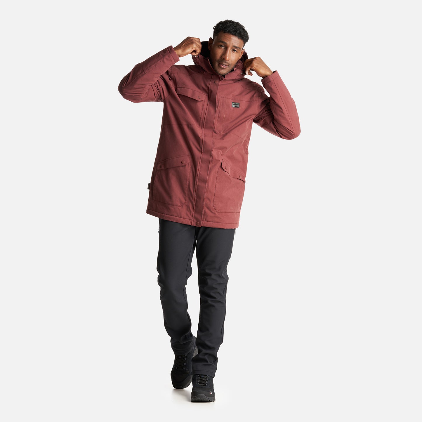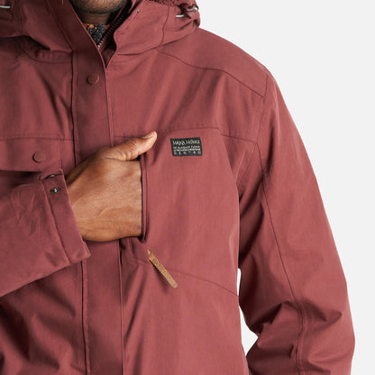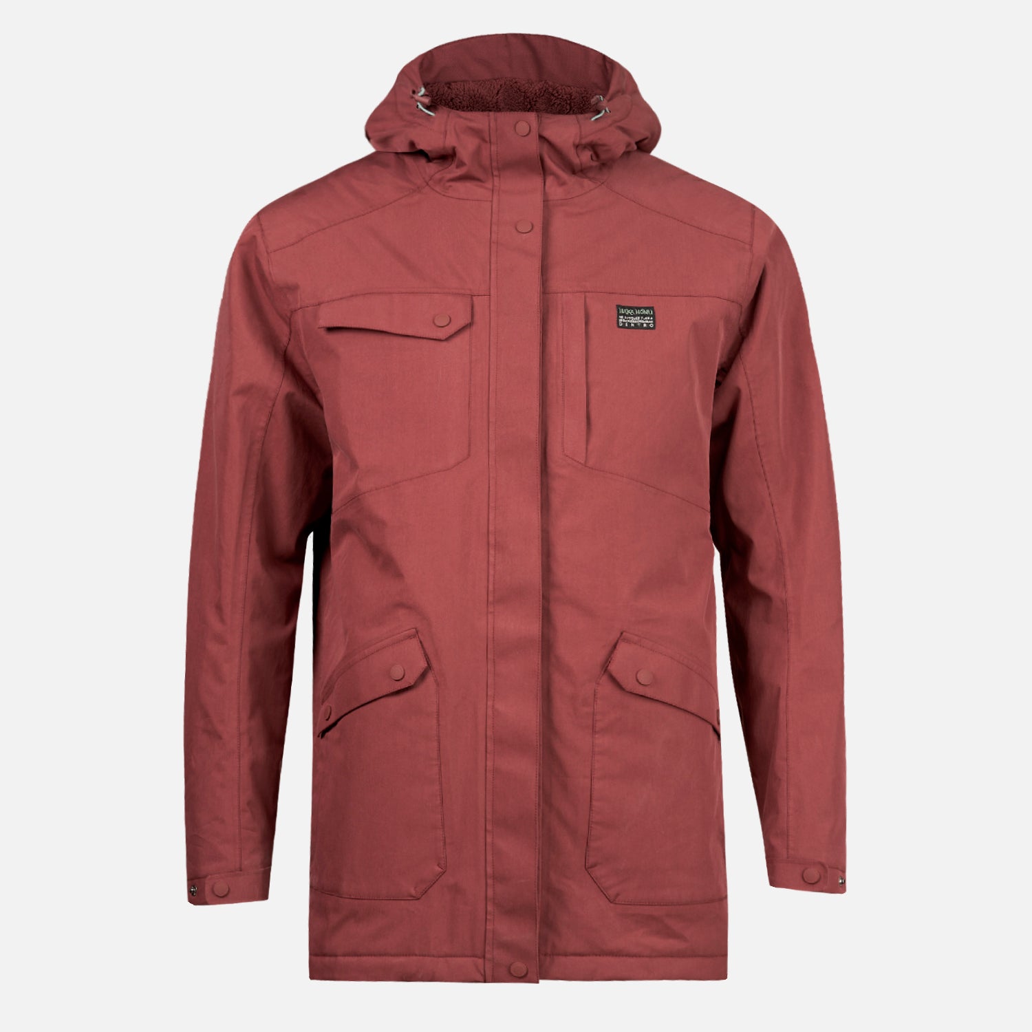 Chaqueta técnica impermeable con gorro. Todas las costuras están termoselladas internamente. Membrana 10.000/10.000 Cierre principal YKK con tapeta; 2 snaps visibles y velcro. 2 bolsillos de pecho; 1 con tapeta y 1 con cierre YKK 2 bolsillos de mano dobles; con tapeta e ingrso superior y por el costado Ajuste de mangas con velcro. Gorro con doble sistema de ajuste; frontal con elástico y reguladores plásticos y ajuste posterior con cinta y regulador DURAFLEX. Interior de tela shaggy. Forro estampado Bolsillo interopr con cierre y abertura para audífonos