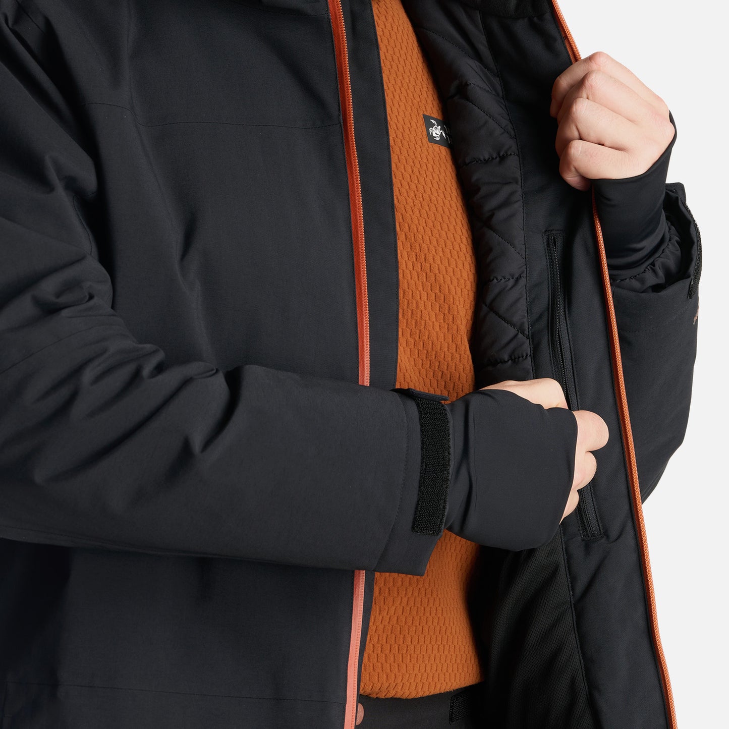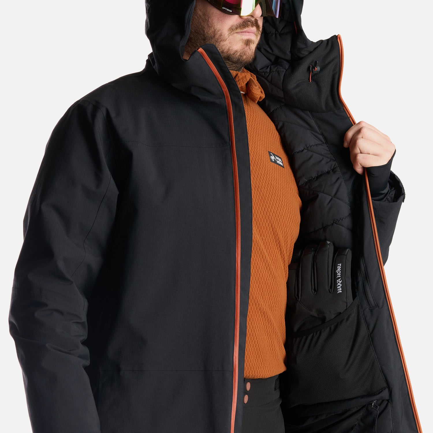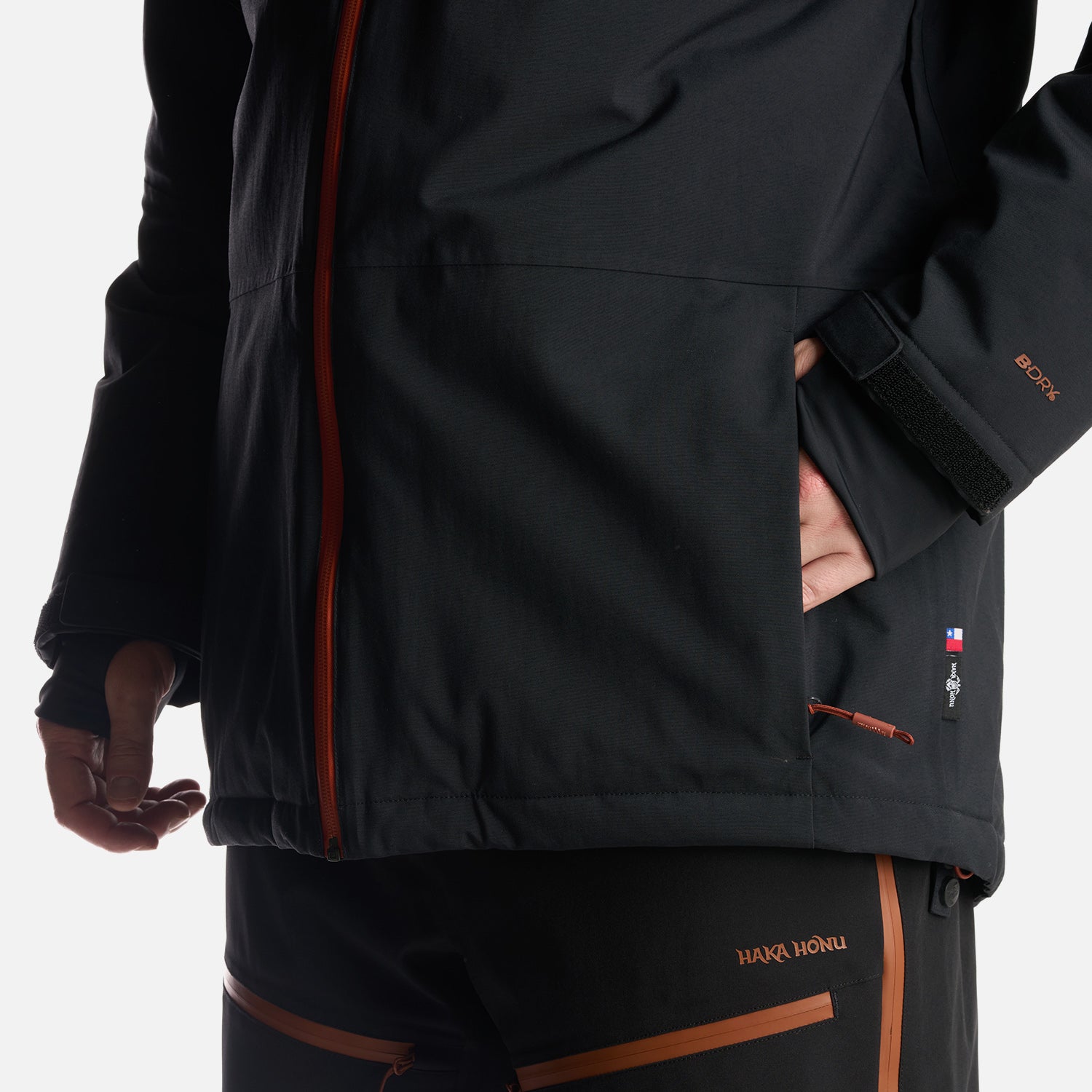 - Chaqueta de nieve impermeable con relleno. - Tratamiento antipilling. - Producto Sustentable. - Membrana 10.000 / 10.000. - Relleno SteamPro 100% Poliéster reciclado con fibras de plástico reciclado del océano. - Cierre principal YKK Aquaguard®. - Bolsillo de pecho con cierre YKK, Bolsillo de pecho con tapeta. - Gorro amplio que permite el uso de casco, Gorro con sistema de ajuste de tankas delanteras, Gorro con visera plegable. - Ajuste en basta con tankas. - Ajuste en puños con tapeta y velcro, Abertura para dedo pulgar, Puño interior de lycra. - Ventilación con cierres SBS. - Gráficas: Full estampado, Logos estampados. - Bolsillo interior con cierre YKK, Bolsilos de malla amplios para guardar guantes o antiparras. - Tela interior: Tabicado interior a la vista. - Faldón antinieve desmontable, Paño de microfibra incorporado en bolsillo limpia antiparras. - Bolsillos con cierre YKK, Bolsillo con tapeta. - Calce oversize.