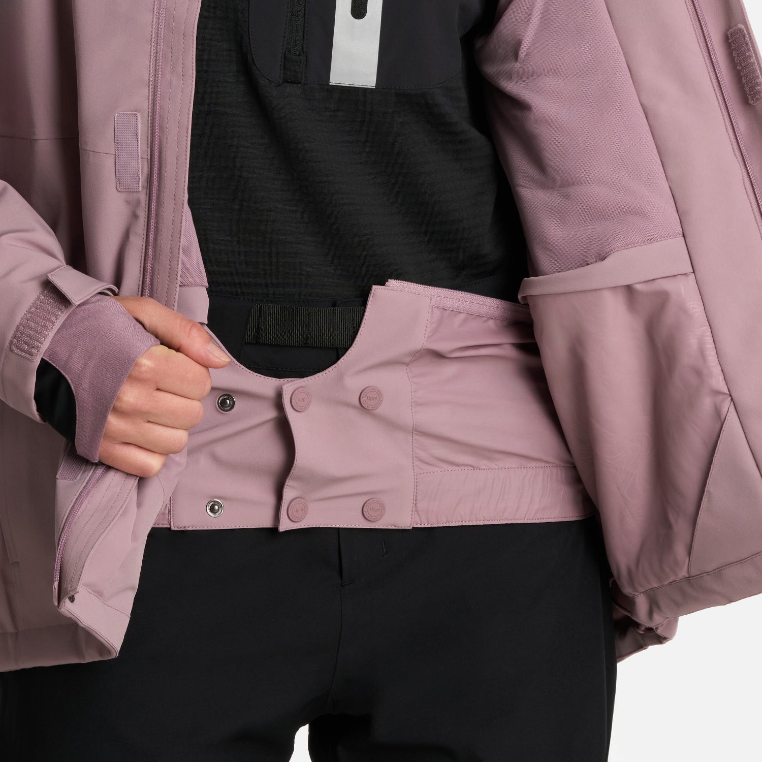Chaqueta de nieve impermeable y cortaviento. - Gorro desmontable. - Relleno sintético, ultraliviano y térmico: Steam Pro. - Costuras termoselladas. - Membrana impermeable 10.000 /10.000. - Bolsillo en pecho y manos con cierre seco AquaGuard®. - Bolsillo en brazo con cierre seco AquaGuard® (bolsillo para guardar tickets). - Paño para limpiar antiparras en bolsillo de mano. - Ventilación bajo los brazos con cierre YKK. - Basta, puños y gorro ajustables. - Puño interior de Lycra. - Faldón interior desmontable antinieve con ajuste elástico y goma. - Bolsillo interior en pecho y salida interior de audífonos. - Bolsillo de malla interior. - Pullers con material reflectante.