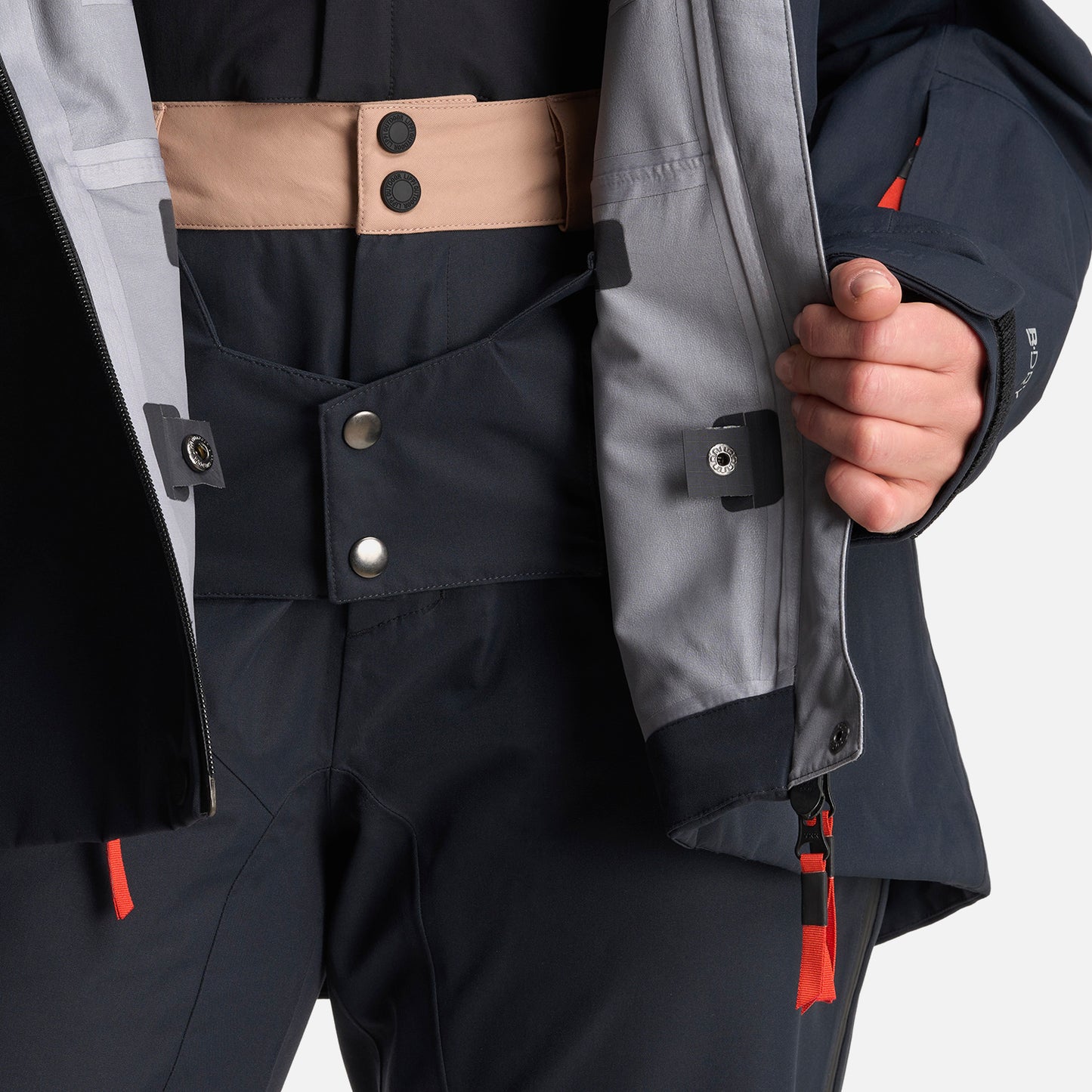- Chaqueta de nieve impermeable. - Cierre principal YKK Aquaguard®. - Bolsillos con cierre YKK Aquaguard®. - Bolsillo de costados con cierre YKK escondido. - Gorro amplio que permite el uso de casco, Gorro con sistema de ajuste elástico. - Ajuste elasticado en basta. - Ajuste de puños con velcro, Puño de lycra, Abertura para dedo pulgar. - Ventilación axilar con cierres YKK. - Bolsillo de costados con cierre YKK escondido. - Faldón antinieve incorporado. - Calce regular.