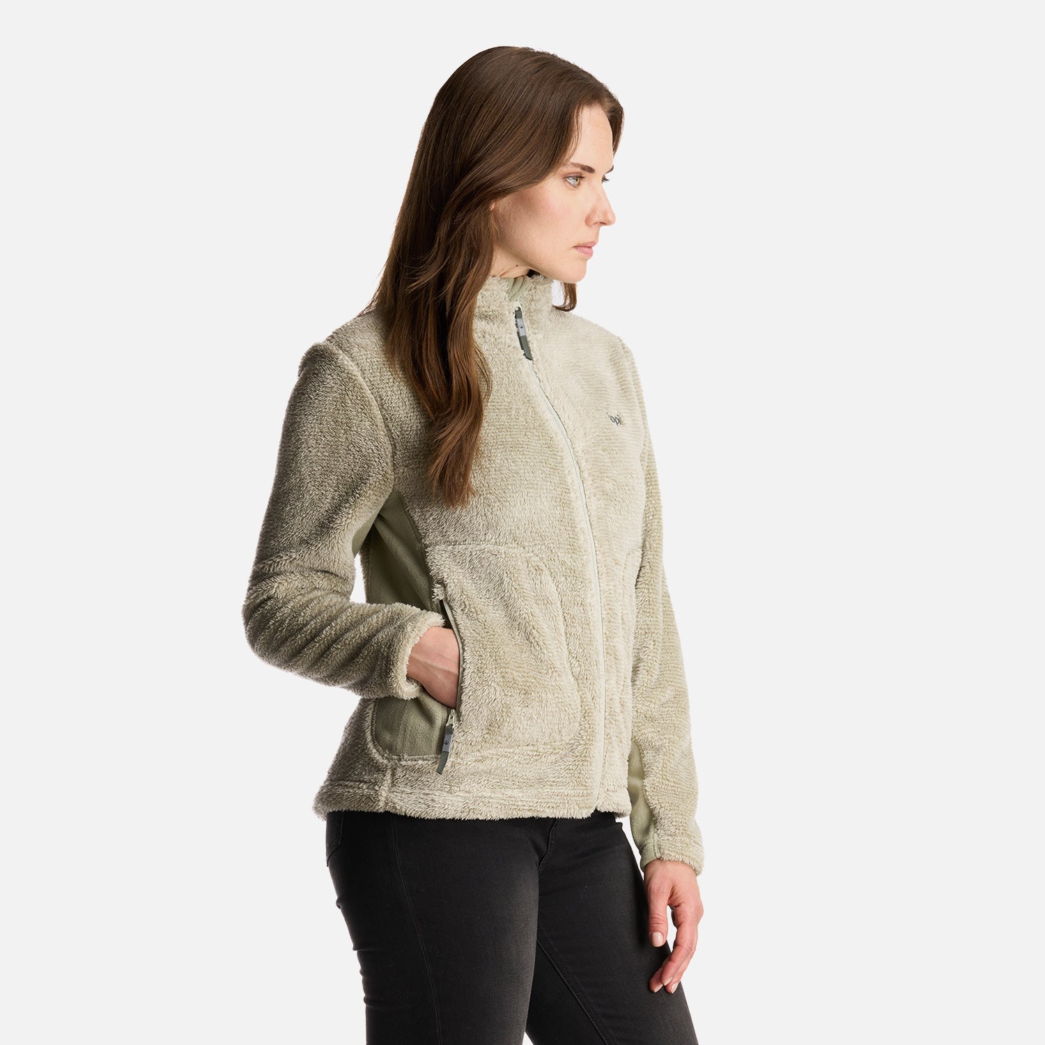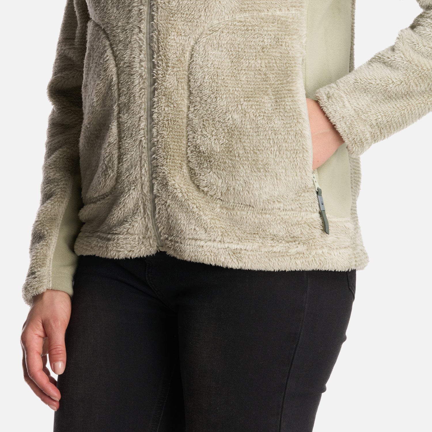 - Polerón shaggy de pelo largo. - Cierre principal YKK. - Bolsillos con cierre. - Calce regular