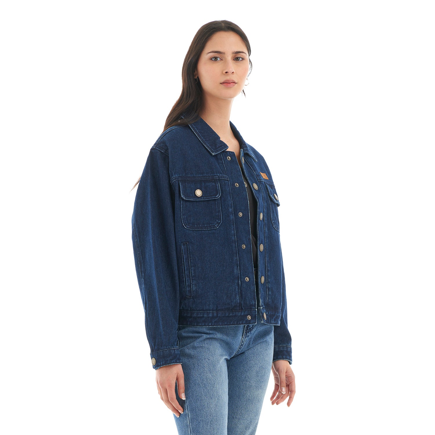 .- Clásica chaqueta de jeans. - Bolsillos en el pecho e inferiores. - Presillas en los costados - Broches metalicos - Parche decorativo en el brazo - Diseño espalda con costuras geometricas. - Estampado interior. - Puño con botón. - Fit Regular