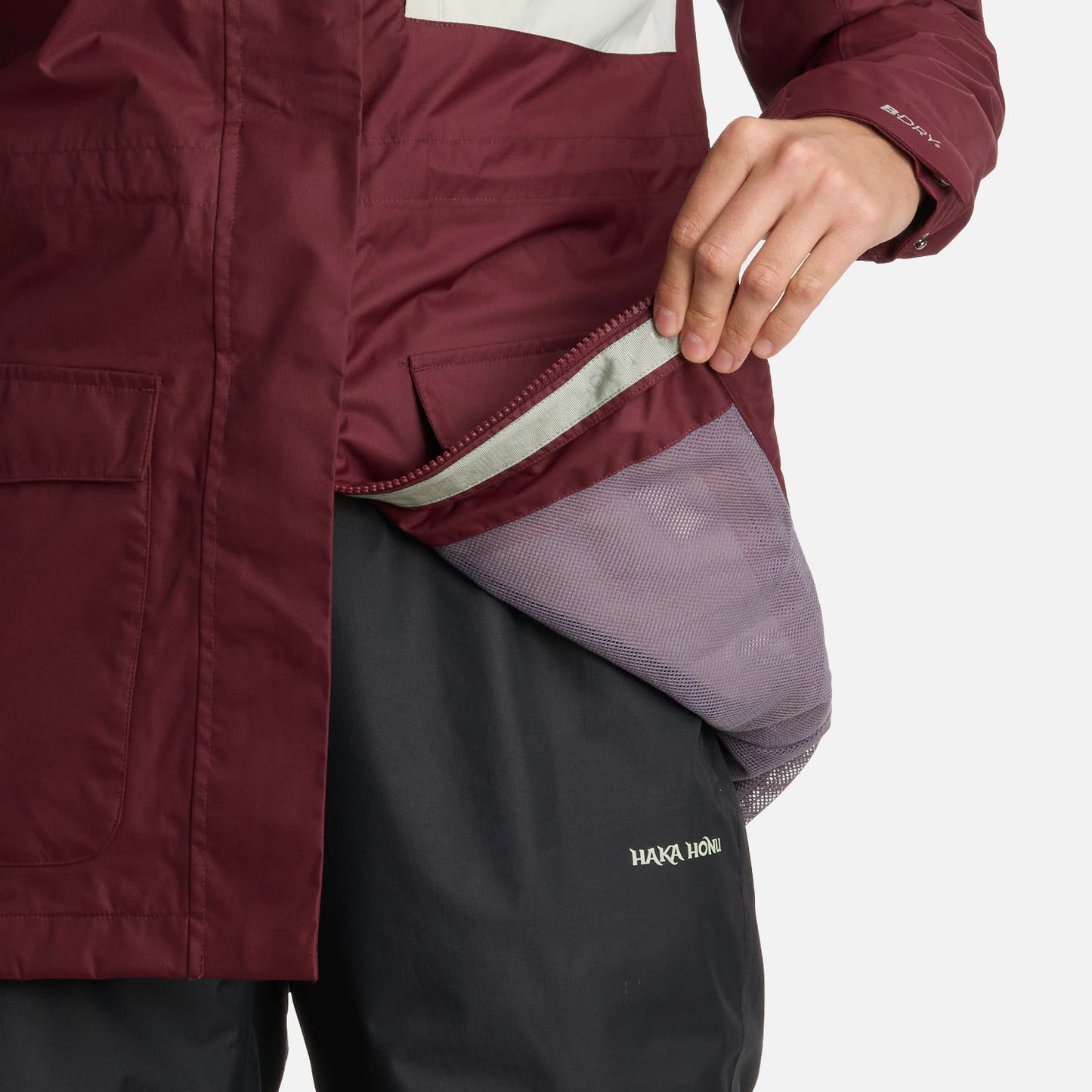 Chaqueta B Dry impermeable 2 capas con forro con diseño y malla, Impermeable, respirable B-Dry, Gorro y basta con ajuste en sistema de tankas, Puño ajustable con velcro, Cierre principal YKK, Todas las costuras termoselladas.