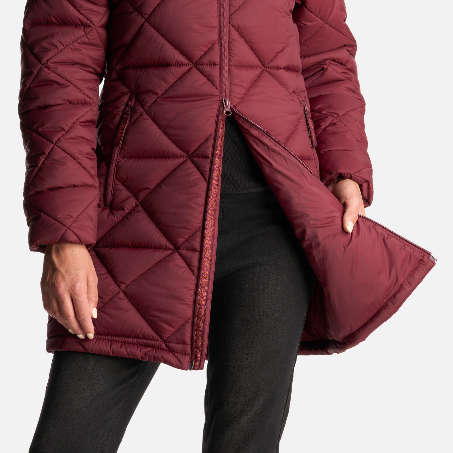 - Chaqueta insulada larga con tabicado asimétrico y relleno sintético. - Tratamiento repelencia. - Relleno SteamPro 100% Poliéster reciclado con fibras de plástico reciclado del océano. - Cierre principal YKK. - Gorro con ajuste de cordones. - Puño con elástico interior. - Bolsillos interior con cierre SBS. - Bolsillos con cierre SBS. - Calce regular.
