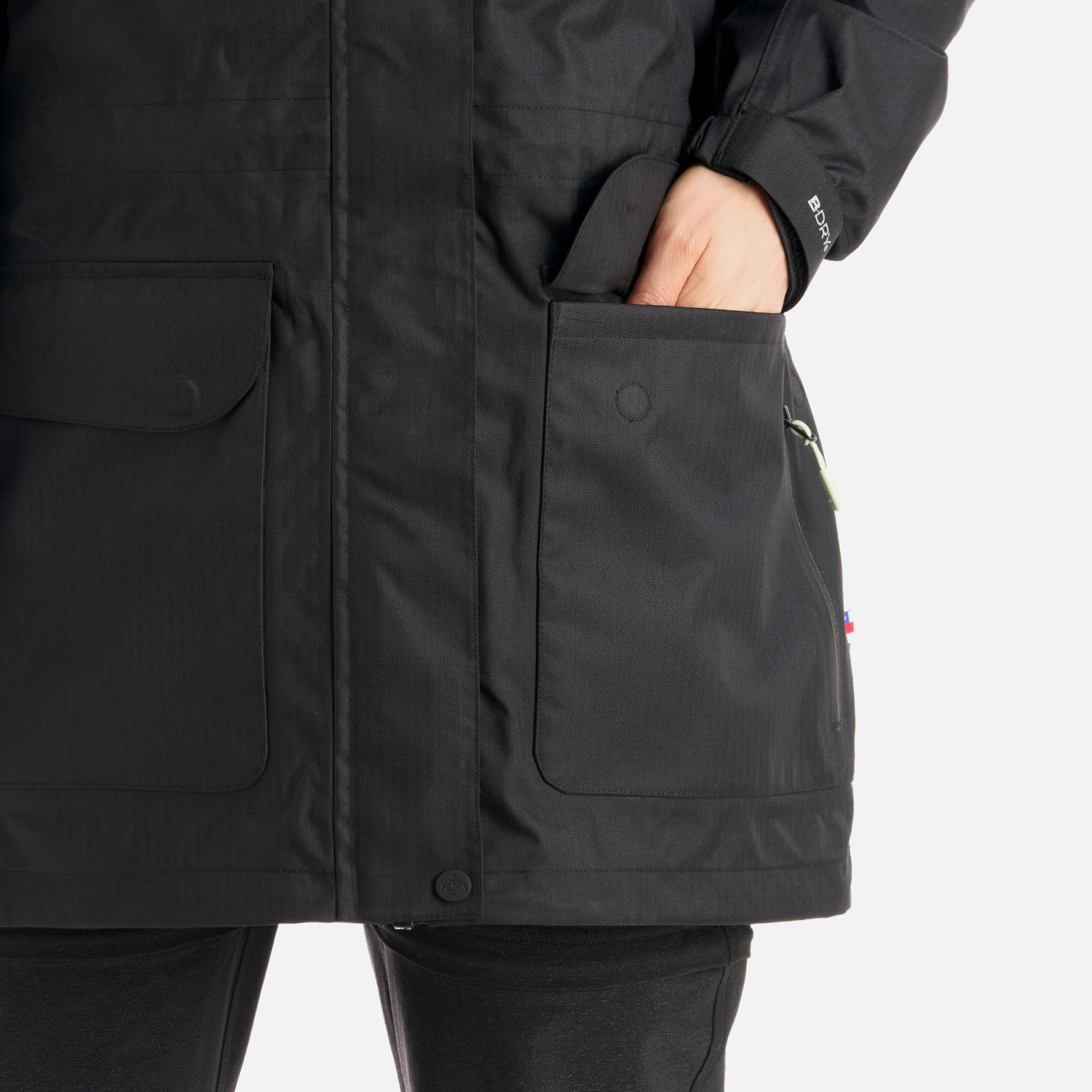 - Chaqueta 3 en uno de exterior impermeable. - Tratamiento antipilling. - Producto Sustentable. - Membrana 10.000 / 10.000. Relleno SteamPro 100% Poliéster reciclado con fibras de plástico reciclado del océano. - Cierre principal YKK. - Bolsillo de pecho con cierre YKK. - Gorro con sistema de ajuste de tankas delanteras, Gorro con ajuste trasero. - Ajuste en basta con tankas. - Ajuste en puños con tapeta y velcro, Puño con elástico interior. - Gráficas: Logos estampados. - Bolsillo interior. - Tapeta con broches a la vista. - Bolsillos con cierre SBS. - Calce regular.