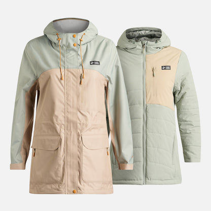 Clásico de clásicos. Más de 10 años de historia y con un significado único para nosotros. La Perro Guapo no es solo el producto emblema que tenemos, es historia pura. Es amor e inspiración, que transformamos en una chaqueta 3 en 1 desmontable, exterior impermeable con costuras termoselladas, coating de repelencia al agua. Chaqueta interior insulada con relleno sintético, desmontable y bolsillo interior con cierre. Un fiel compañero, que te acompaña a contar las historias más increíbles.