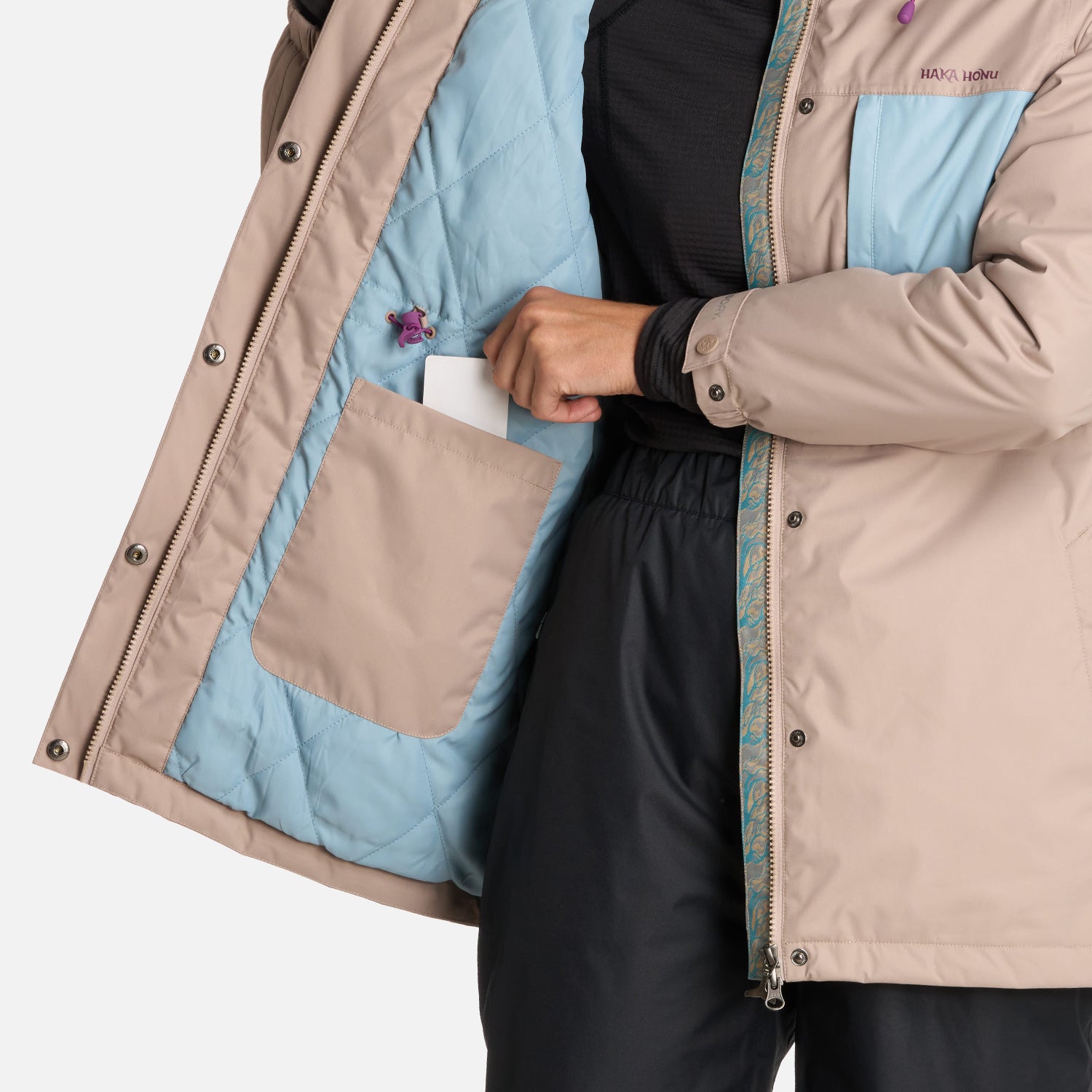 - Chaqueta impermeable con relleno. - Tratamiento antipilling. - Producto Sustentable. - Membrana 10.000 / 10.000. - Relleno SteamPro 100% Poliéster reciclado con fibras de plástico reciclado del océano. - Cierre principal YKK con tapeta. - Bolsillo de pecho con cierre SBS escondido. - Gorro con sistema de ajuste de tankas delanteras. - Ajuste en basta con tankas. - Ajuste en puños con tapeta y broches. - Gráficas: Logos estampados. - Bolsillo interior. - Tela interior: Tabicado interior a la vista. - Tapeta con broches a la vista. - Bolsillos con cierre SBS. - Calce regular.
