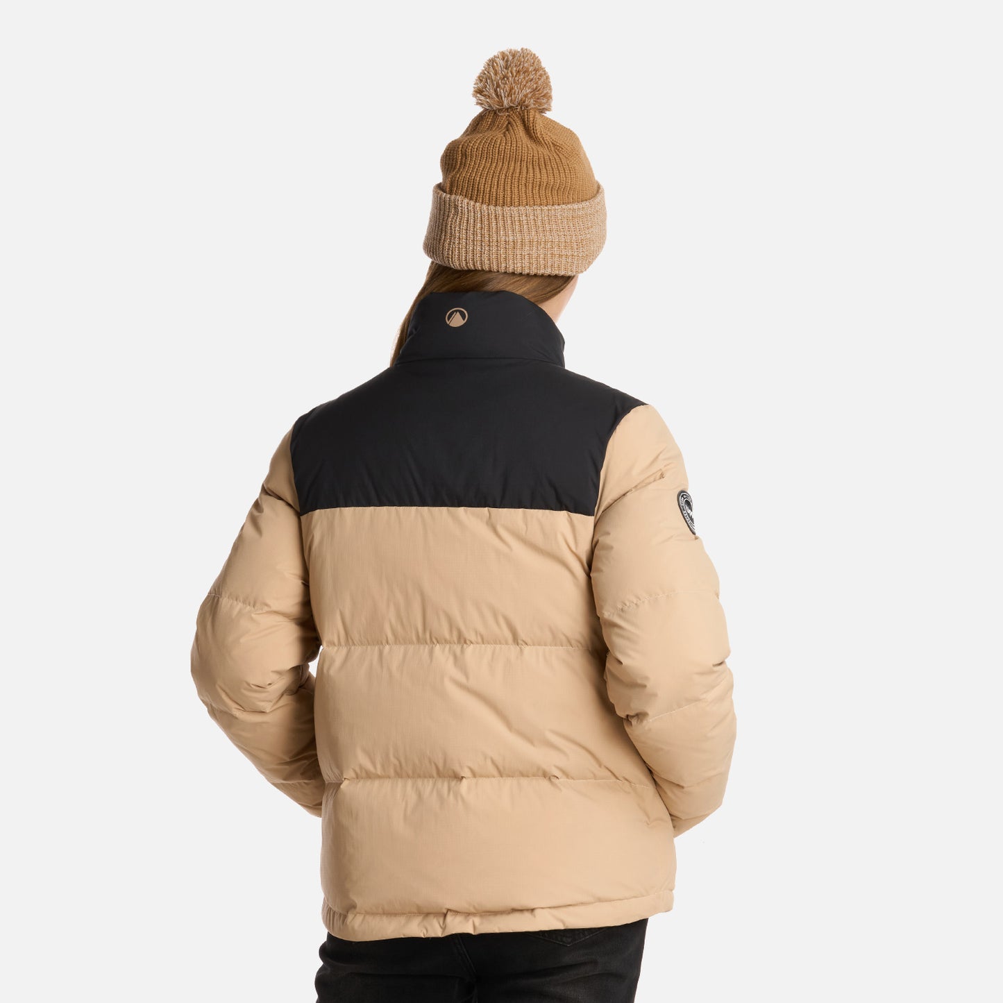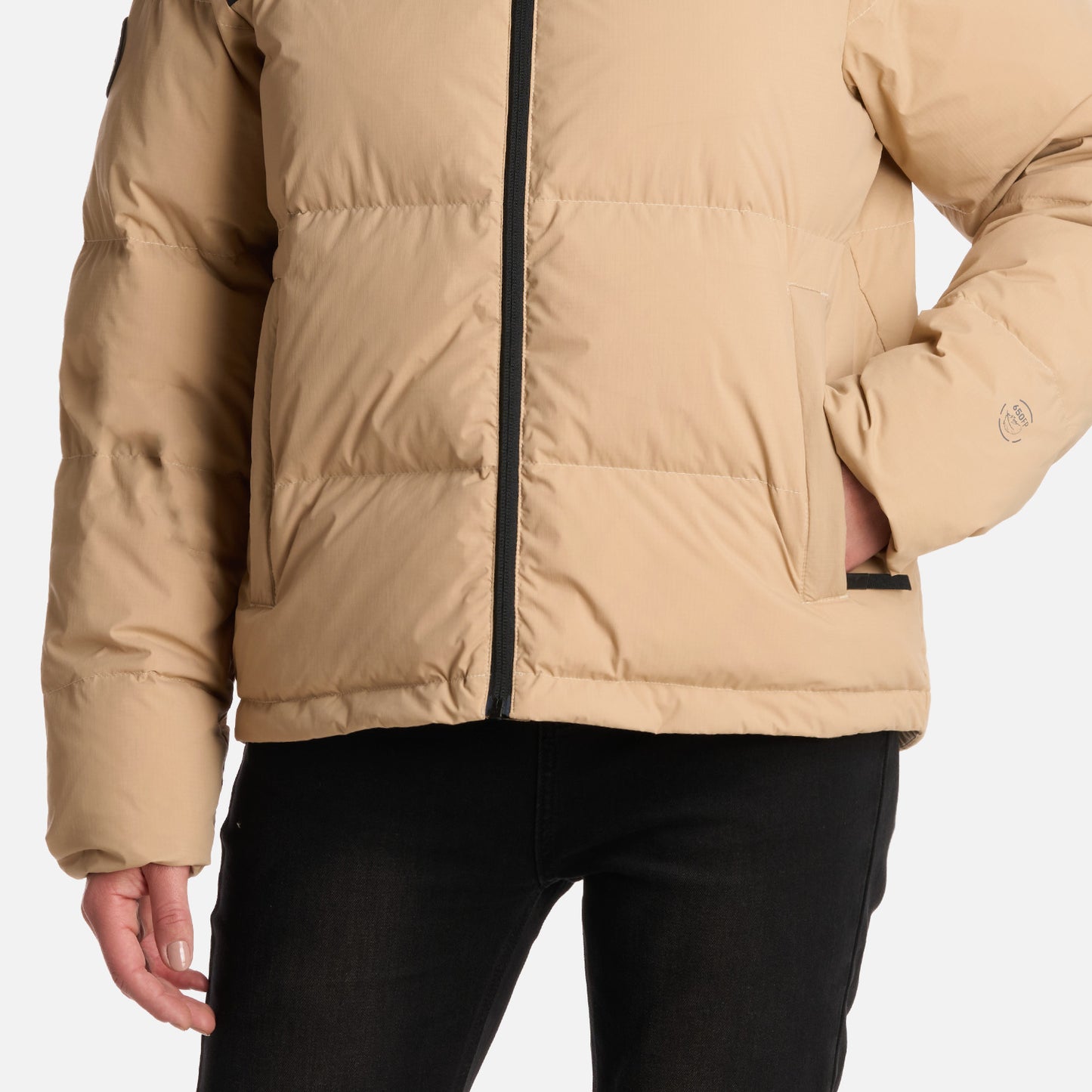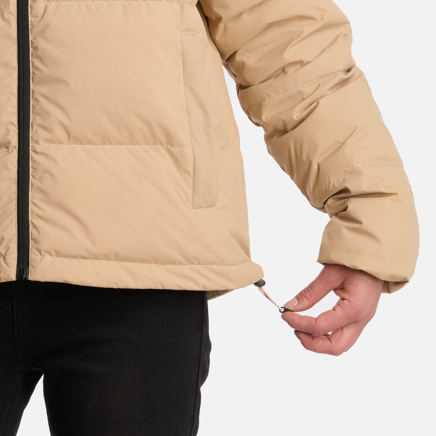Chaqueta insulada Relleno de pluma de ganso 90/10 700 Filling Power Downproof Cambio de tela y de color Cierre principal YKK, dos bolsillos laterales y bolsillo interior YKK Sistema de ajuste en la pretina