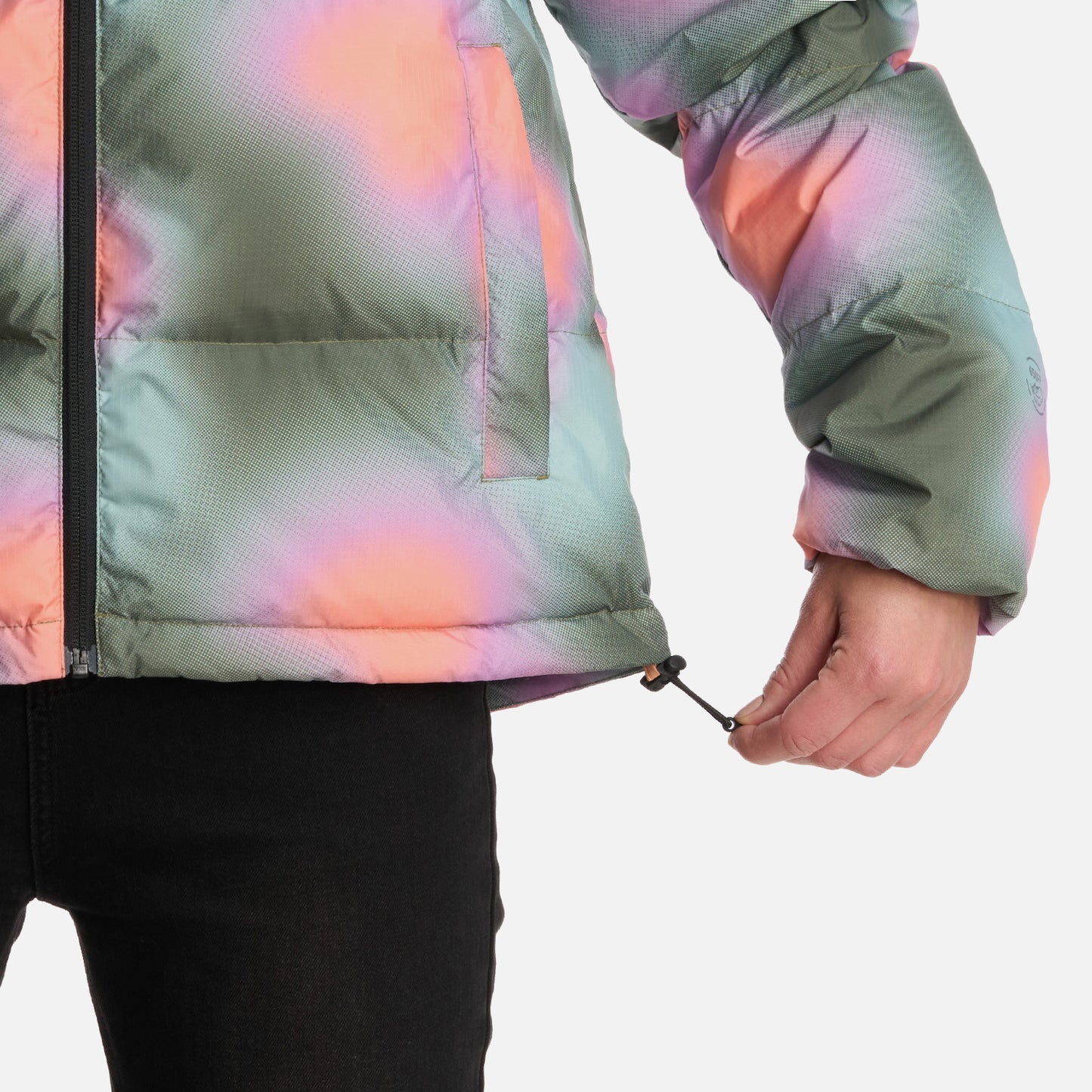 Chaqueta insulada Relleno de pluma de ganso 90/10 700 Filling Power Downproof Cambio de tela y de color Cierre principal YKK, dos bolsillos laterales y bolsillo interior YKK Sistema de ajuste en la pretina
