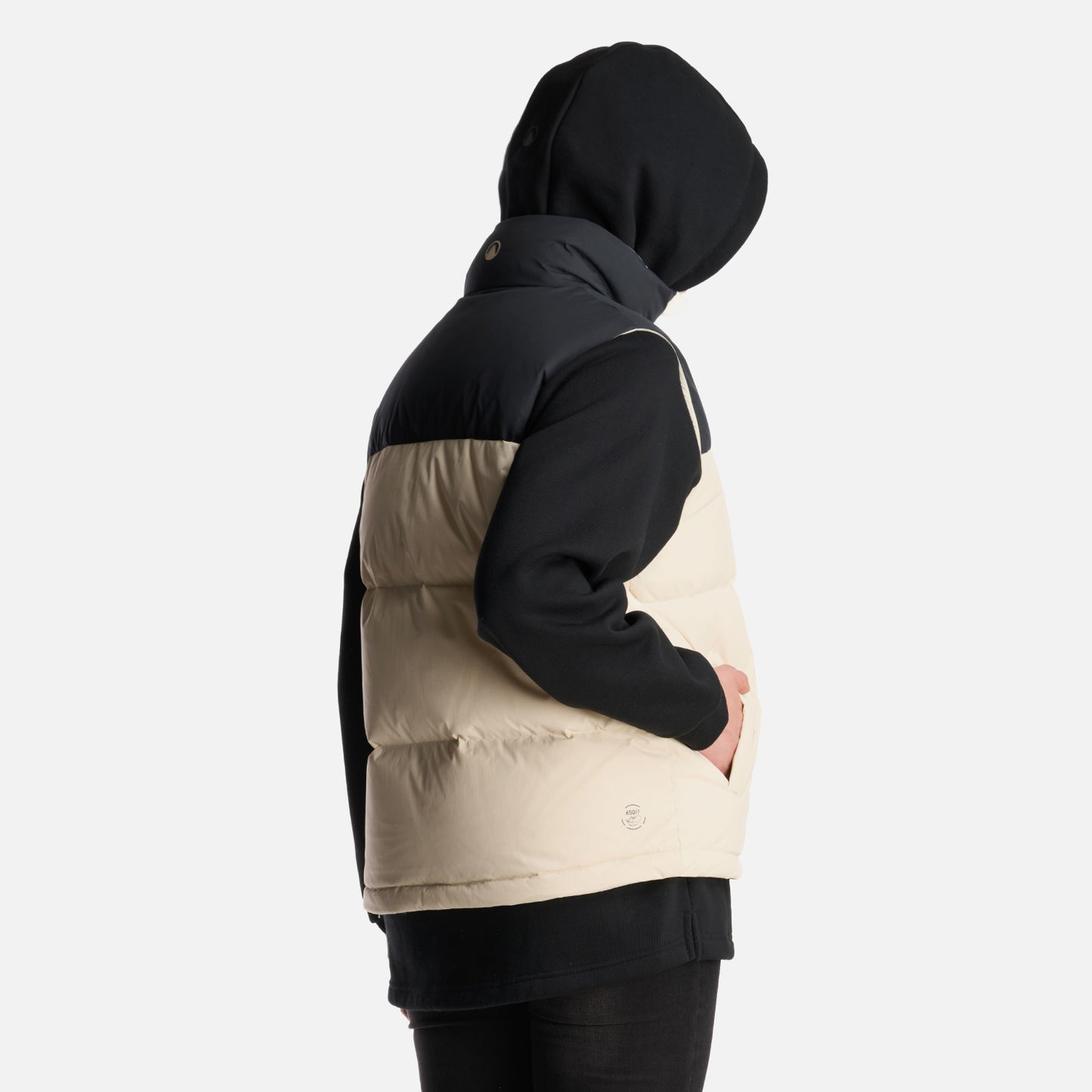 - Tela Principal: 100% Nylon Reciclado - Tela Secundaria: 100% Poliéster Reciclado - Relleno de Pluma de Pato 650 Fill Power