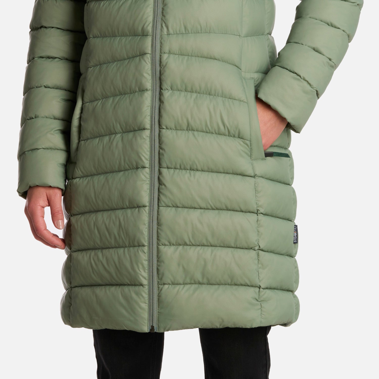 La chaqueta insulada larga Warm Day ofrece una protección confiable contra el frío, manteniéndote cálido gracias a su relleno sintético Steam-Pro. Su diseño repelente al agua te protege de la humedad, mientras que el cierre principal YKK y los bolsillos con cierre YKK aseguran durabilidad y funcionalidad. El puño interno refuerza la retención de calor, haciéndola ideal para condiciones frías y húmedas.