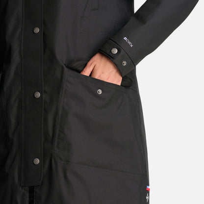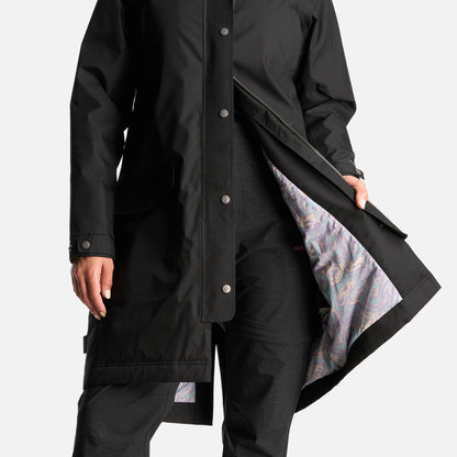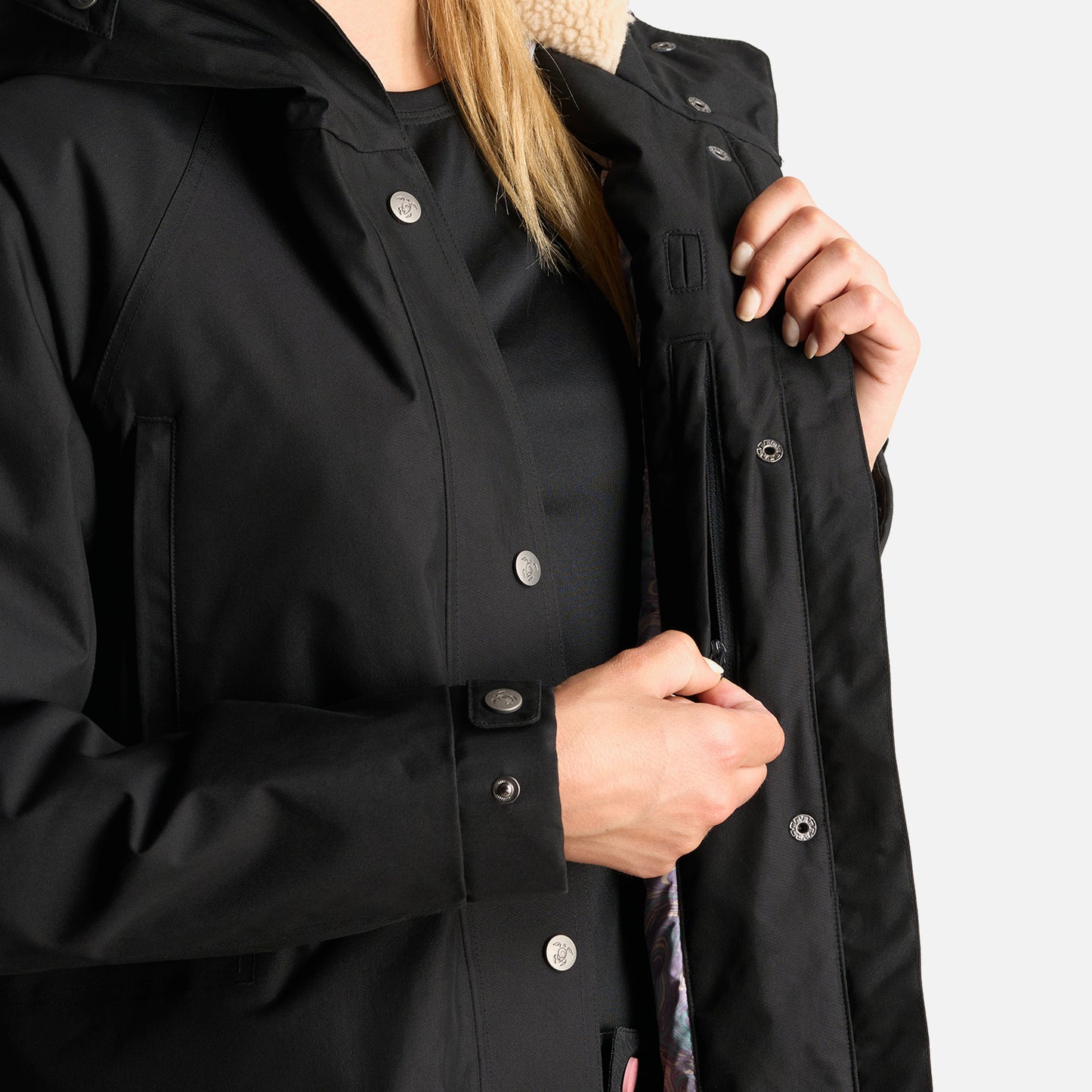 - Chaqueta impermeable 2 capas. - Tratamiento repelencia. - Membrana 10.000 / 10.000. - Relleno SteamPro 100% Poliéster reciclado. - Cierre principal YKK. - Bolsillo de pecho con tapeta. - Gorro con ajuste trasero, Gorro con visera plegable. - Ajuste en cintura con tankas. - Ajuste en puños con tapeta y broches. - Gráficas: Accesorios de cuero. - Bolsillo interior con cierre YKK. - Tela interior: Forro estampado, Tela Shaggy en espalda para mayor abrigo. - Tapeta con broches a la vista. - Bolsillos parche. - Calce regular.