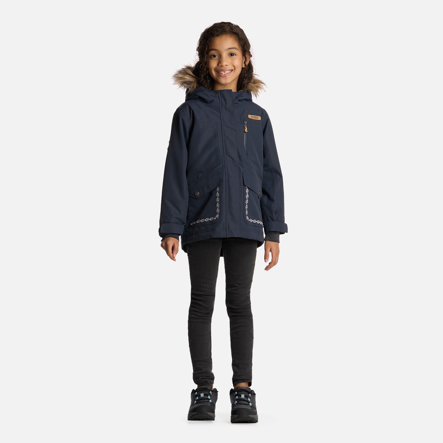 - Chaqueta impermeable y térmica. - Cierre principal YKK con tapeta. - Tapeta con broches a la vista. - Bolsillo de pecho con cierre SBSAquaguard®. - Bolsillos parche. - Gorro con pelo desmontable, Gorro con ajuste trasero. - Ajuste en puños con broches. - Bolsillo de malla. - Calce regular.