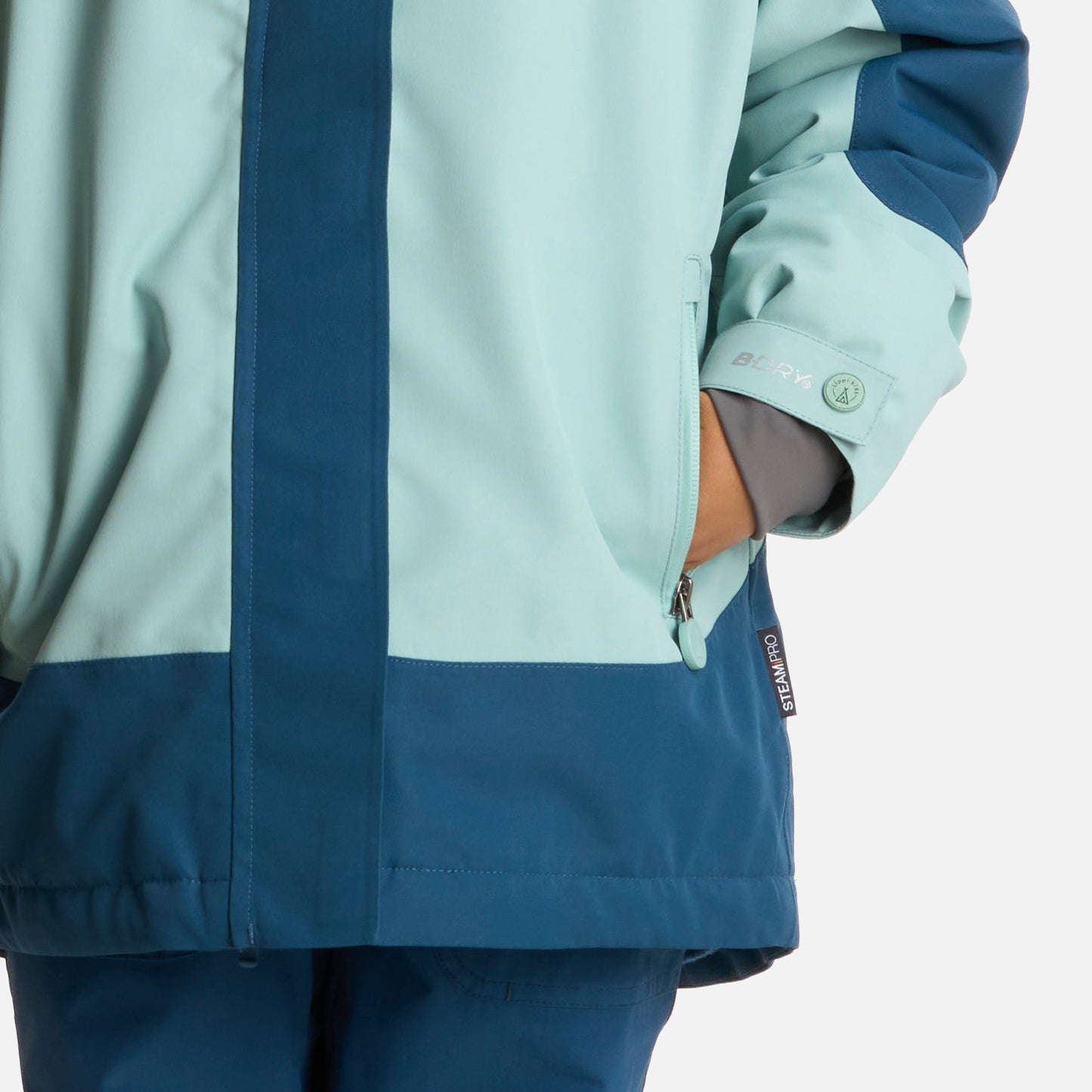 Chaqueta de nieve impermeable y cortaviento. - Gorro desmontable. - Relleno sintético, ultraliviano y térmico: Steam Pro. - Costuras termoselladas. - Membrana impermeable 10.000 /10.000. - Bolsillo en pecho y manos con cierre seco AquaGuard®. - Bolsillo en brazo con cierre seco AquaGuard® (bolsillo para guardar tickets). - Paño para limpiar antiparras en bolsillo de mano. - Ventilación bajo los brazos con cierre YKK. - Basta, puños y gorro ajustables. - Puño interior de Lycra. - Faldón interior desmontable antinieve con ajuste elástico y goma. - Bolsillo interior en pecho y salida interior de audífonos. - Bolsillo de malla interior. - Pullers con material reflectante.