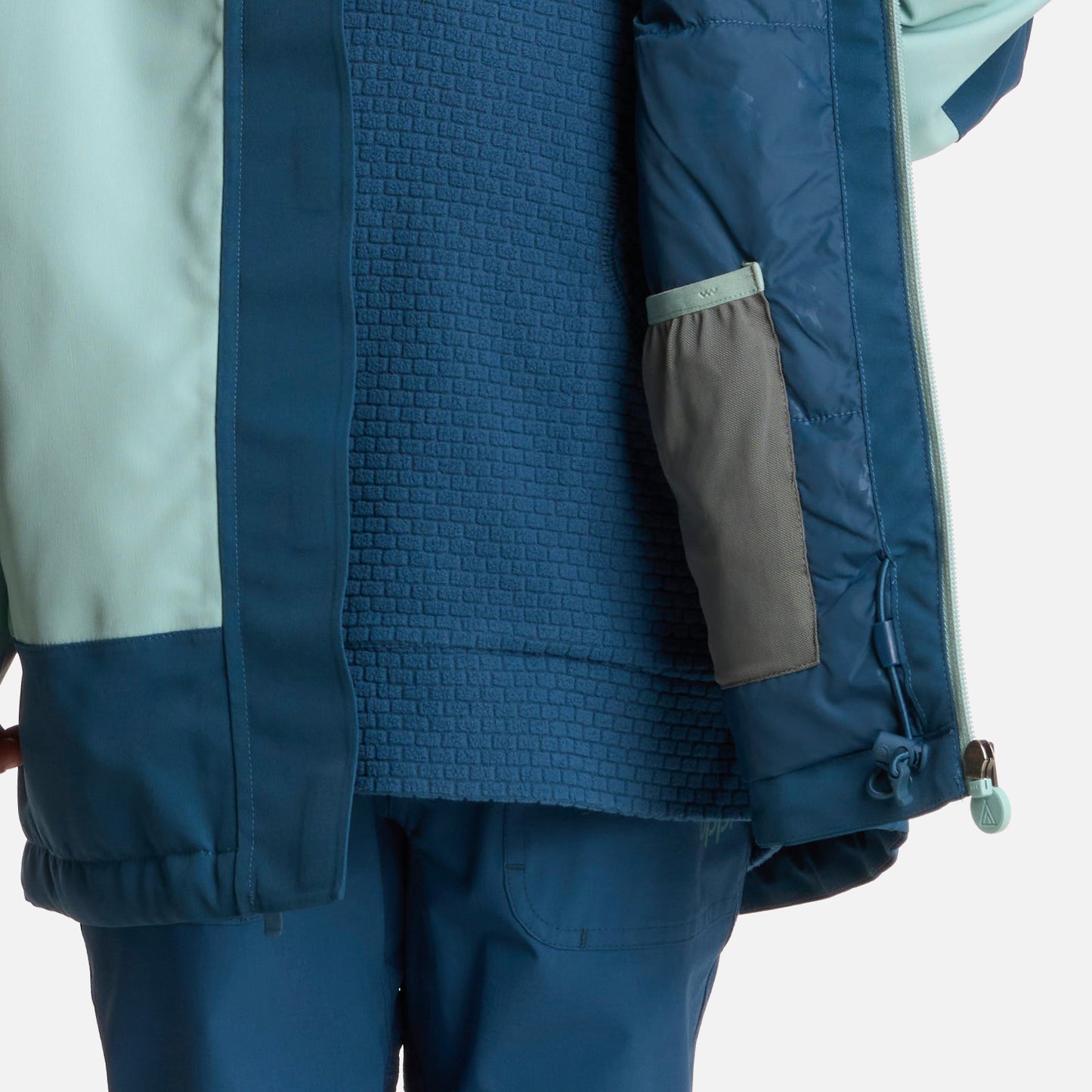 · Chaqueta de nieve impermeable y cortaviento con costuras termoselladas · Relleno Sintético 100% Reciclado · Cierre Principal YKK reforzado con flap y velcro · Bolsillos de mano con cierre seco YKK AquaGuard® · Basta, puños y gorro ajustables · Puño interior de lycra · Faldón interior desmontable antinieve con ajuste elástico y goma · Bolsillo de malla interior y bolsillo interior en pecho · Print reflectivo en espalda · Accesorios línea KIDS