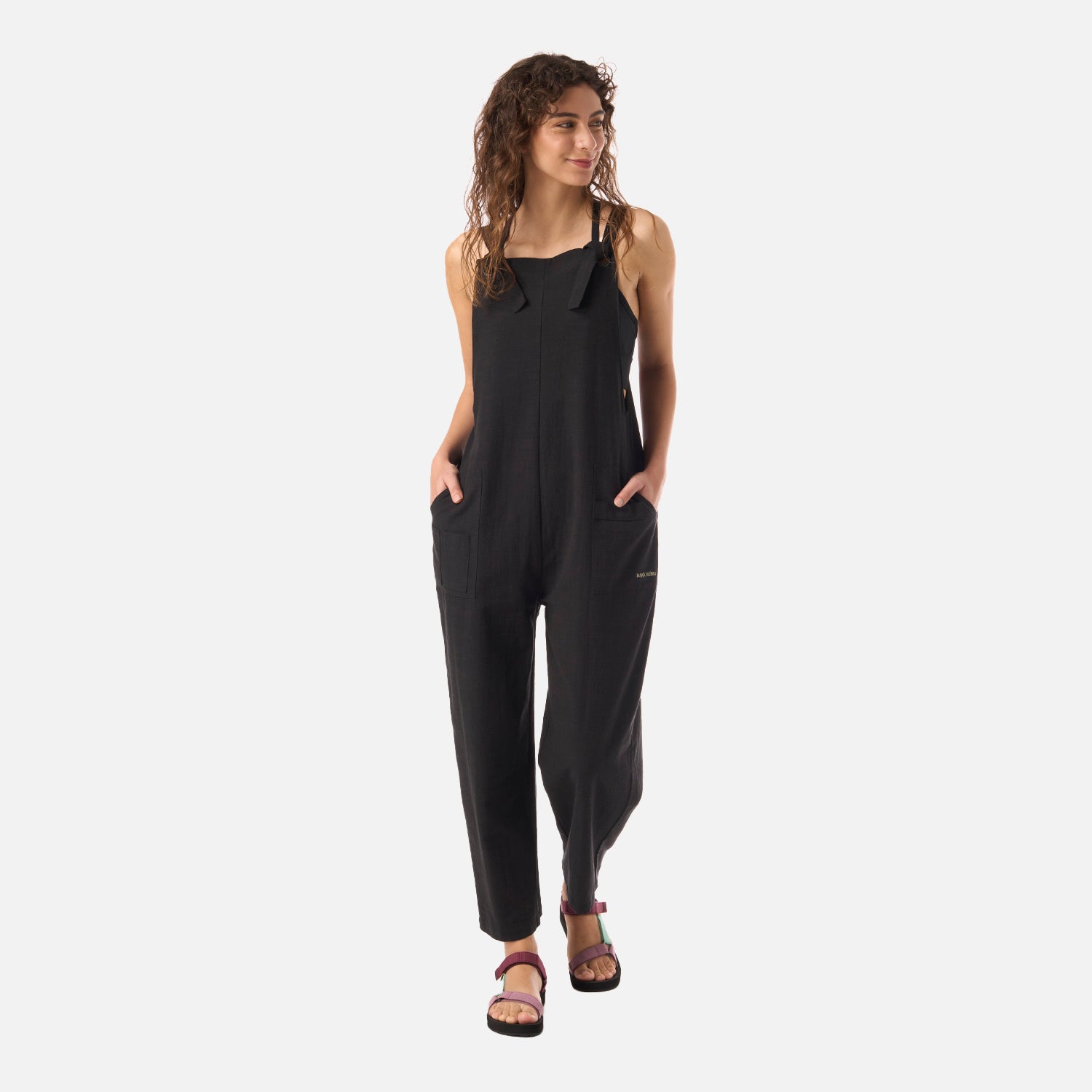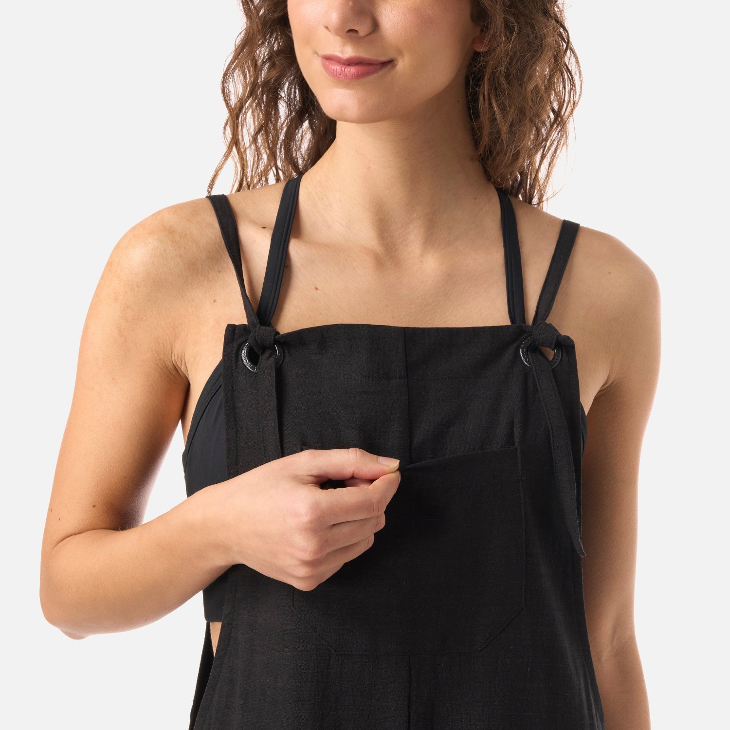 Jardinera hecha con telas naturales, ligera y respirable para moverte sin límites. Tirantes ajustables, bolsillos amplios y basta con doblez: cada detalle pensado para explorar con todo.