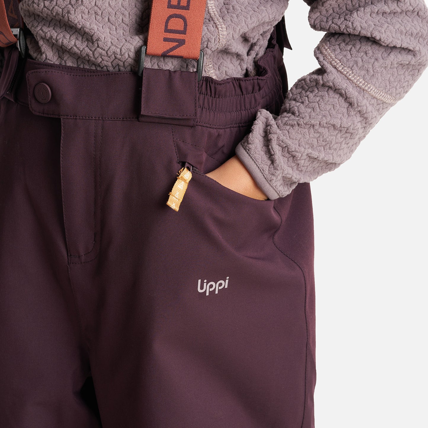 Pantalón de nieve impermeable y cortaviento Costuras termoselladas Relleno Sintetico 100% Reciclado Cierre principal YKK Bolsillo de mano con cierre YKK Tela de refuerzo en rodillas y parte trasera para mayor resistencia a la abrasión. Polaina interior elasticada. Pechera incorporada con bandas elásticas ajustables. Print reflectivo en espalda Accesorios Linea Kids